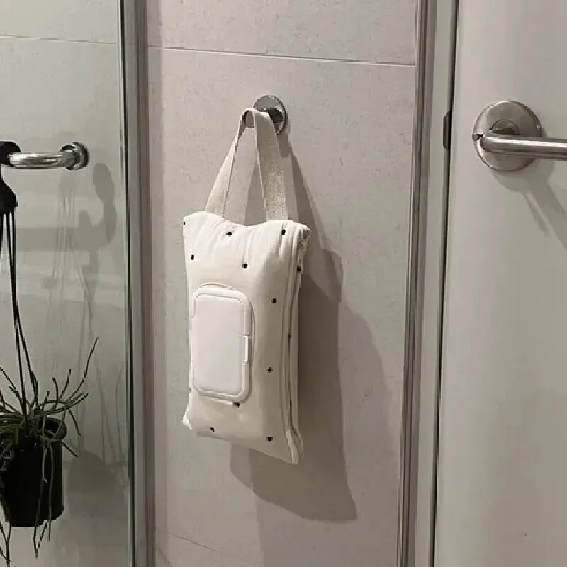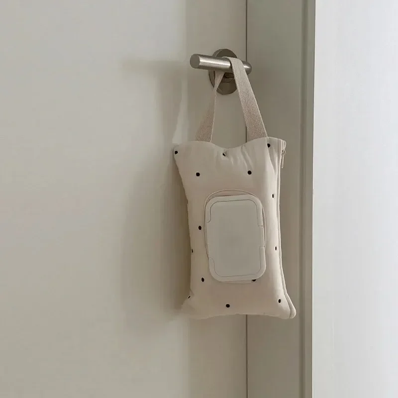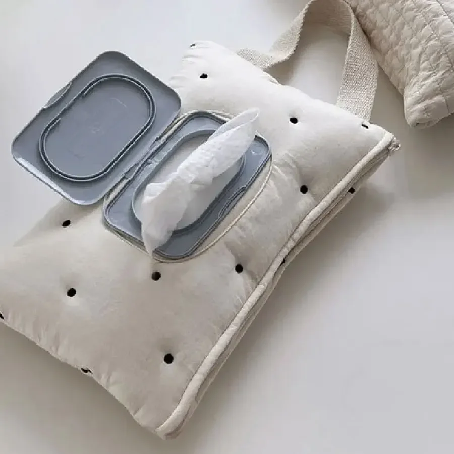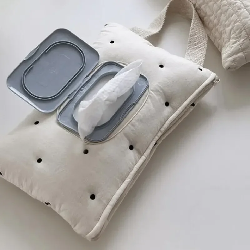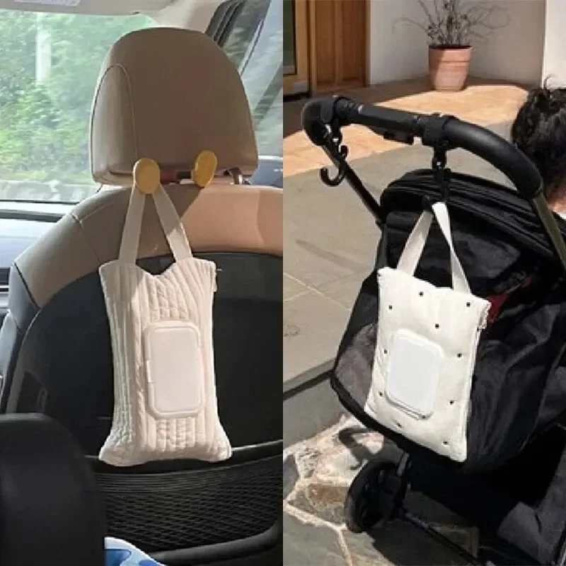 Baby Car-mounted Tissue Box Cute Dot Striped Paper Holder Storage Box Stroller Hanging Bag Detachable Napkin Storage Bag