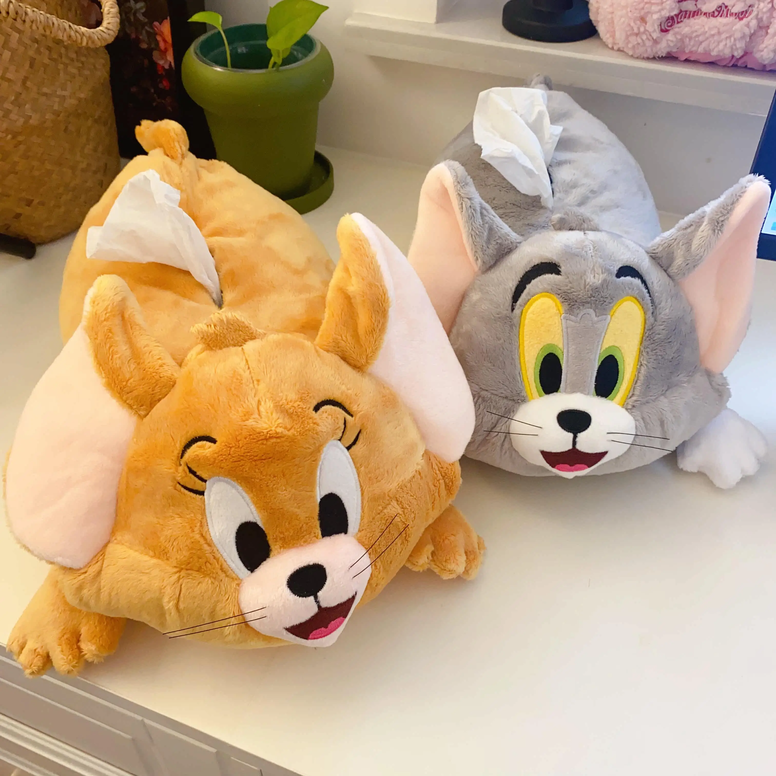 Comprar Caja de pañuelos de peluche de dibujos animados, cubierta de tejido de felpa de Tom y Jerry, Anime, gato, ratón, decoración del hogar, regalos de Peluches