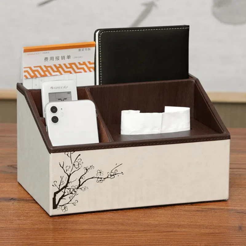 Comprar Caja de pañuelos Rectangular de cuero, soporte multiusos con control remoto de papelería, bolígrafo decorativo