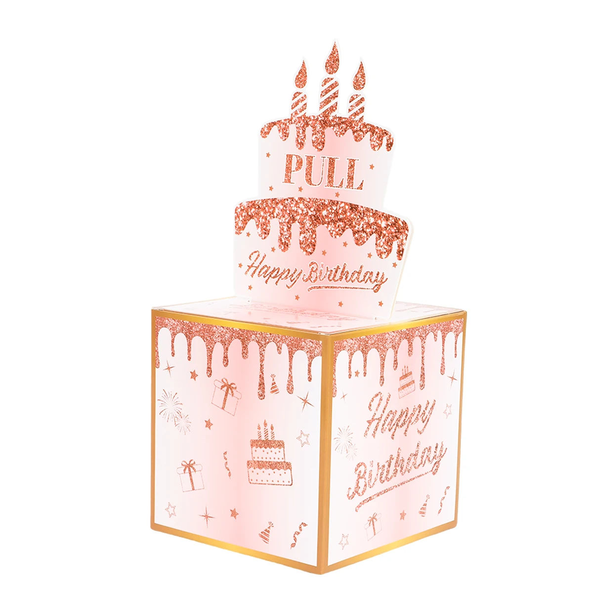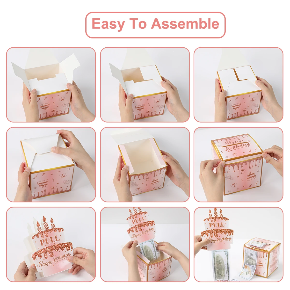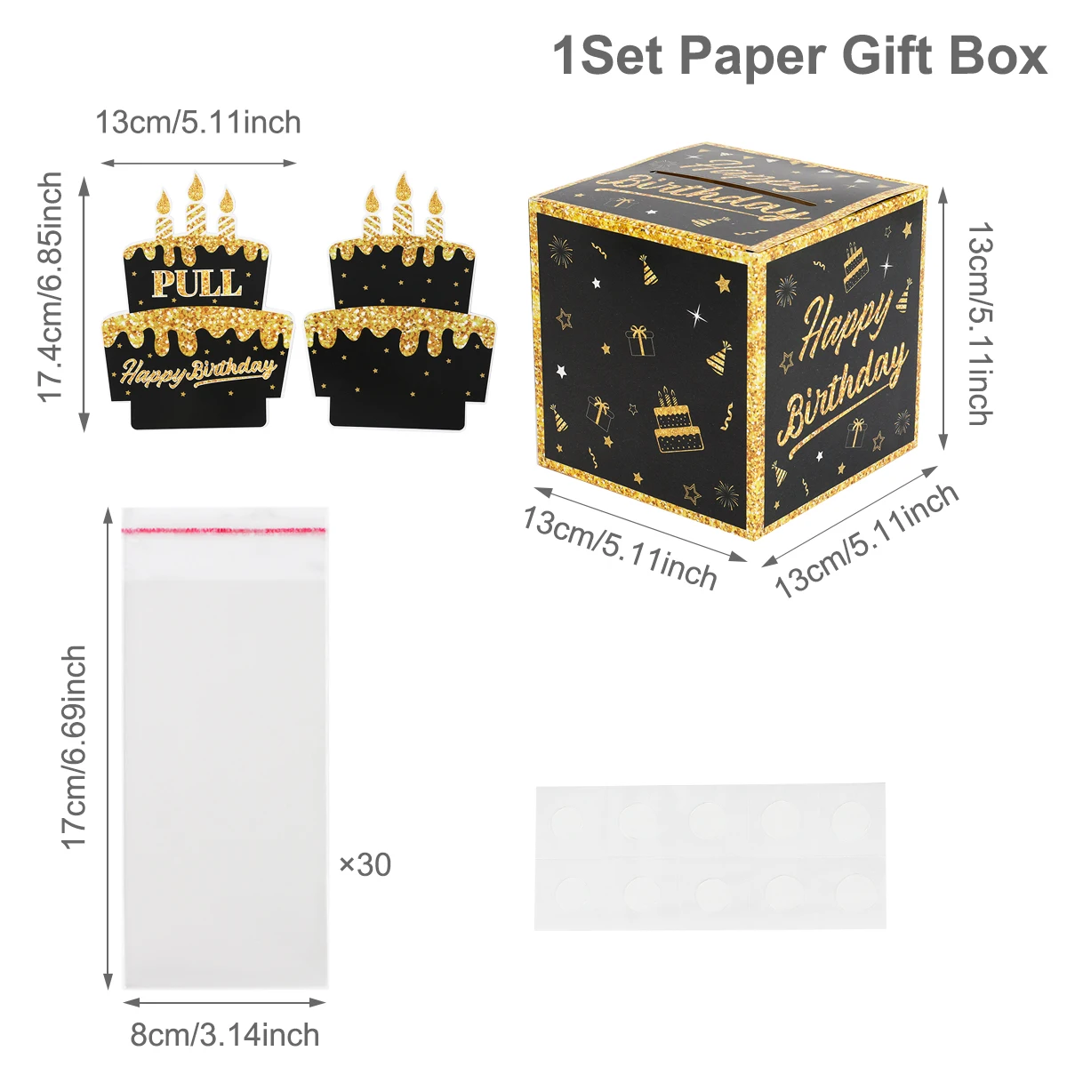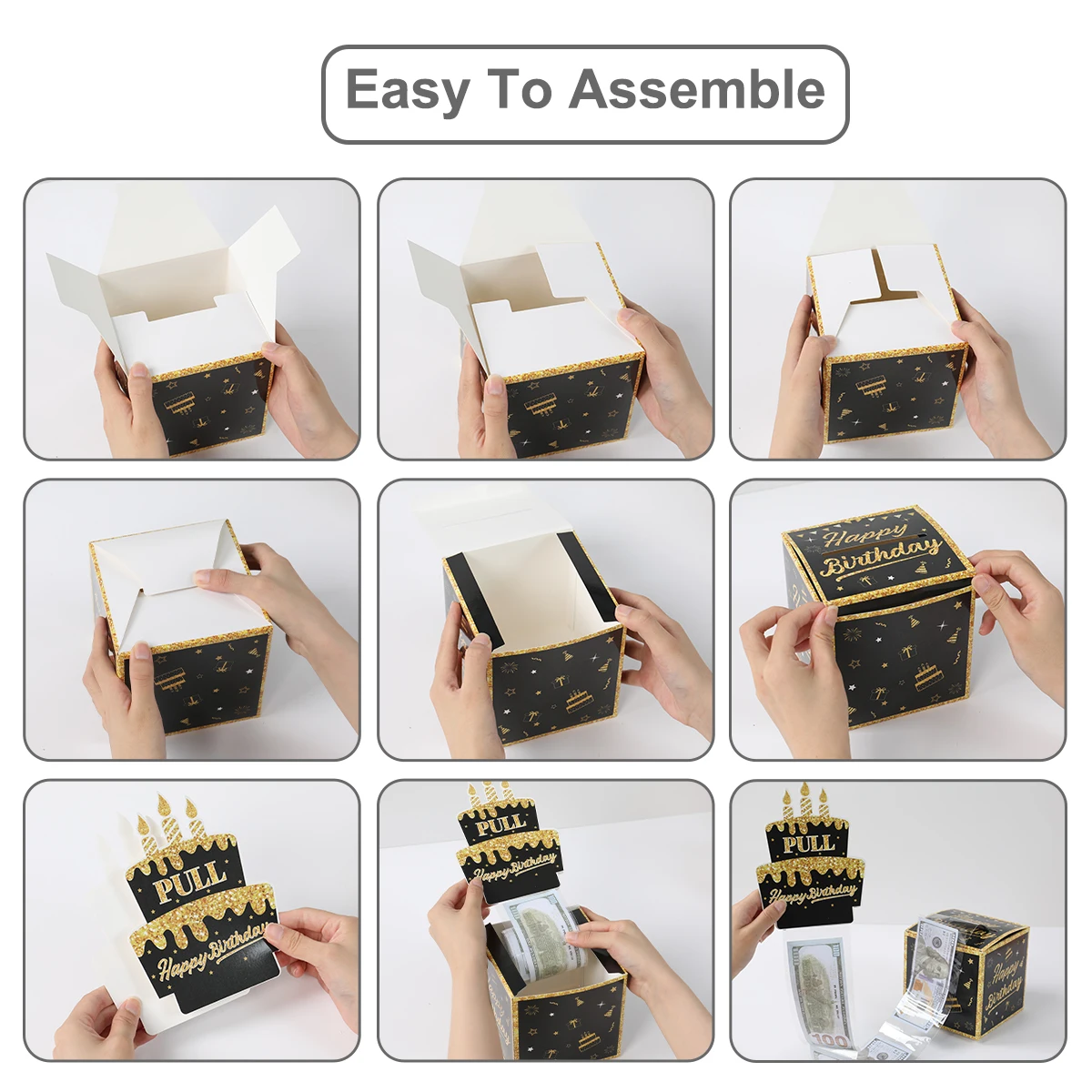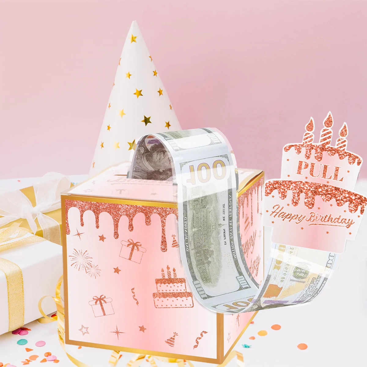 Caja de regalo de efectivo de cumpleaños de oro negro, caja de regalo de efectivo de feliz cumpleaños, Clip de dinero de oro rosa, suministros de fiesta de cumpleaños sorpresa