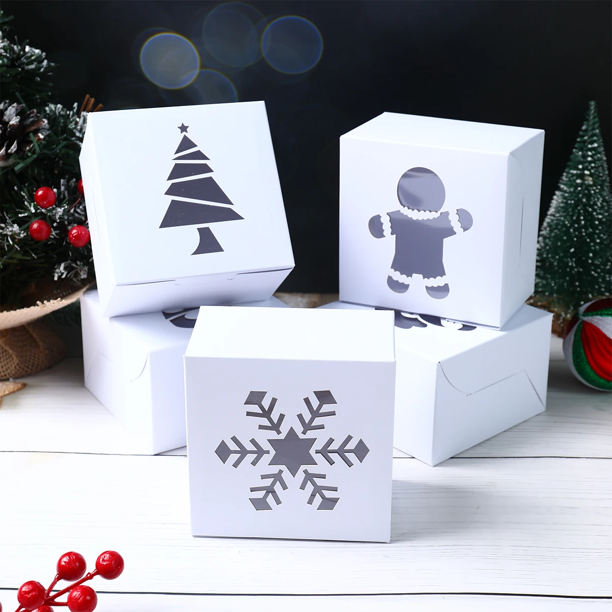 Comprar Caja de ventana de Papá Noel para decoración del hogar, caja de dulces de copo de nieve de Navidad, Kraft, Feliz Navidad, Año Nuevo, 2024, 2025