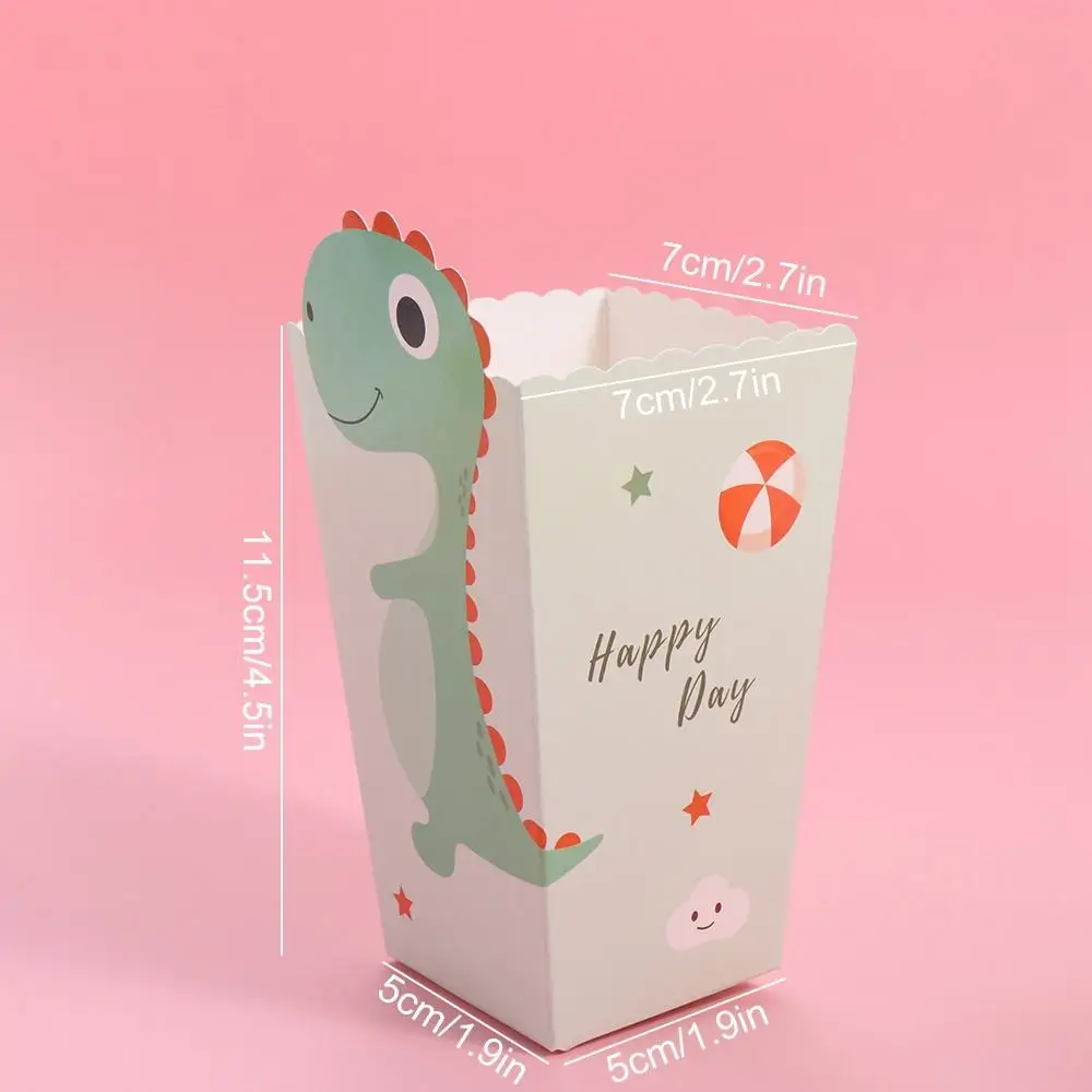 Nombre: Caja de palomitas de dinosaurio de dibujos animados Color: como se muestra tamaño: 7x5x11,5 cm (2,76x1,97x4,53 pulgadas) Material: papel El paquete incluye: Caja de palomitas de dinosaurio de dibujos animados de 12 piezas (3 por estilo) Nota: 1. Permita un error de 1-3cm (0,39-1,18 pulgadas) debido a la medición manual. 2. a la diferencia entre diferentes monitores Debido, es posible que la imagen no refleje el color real del artículo.