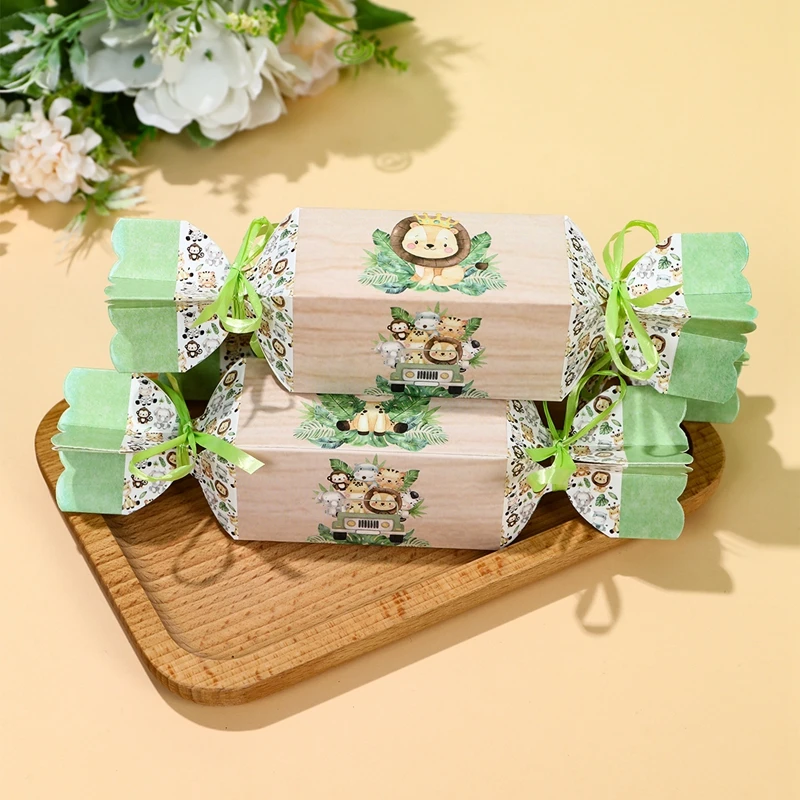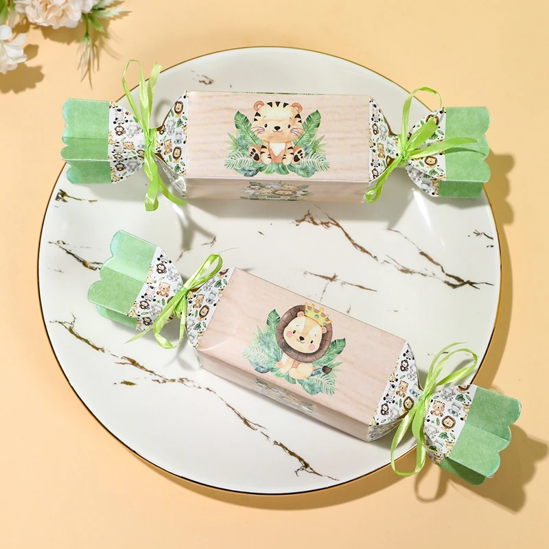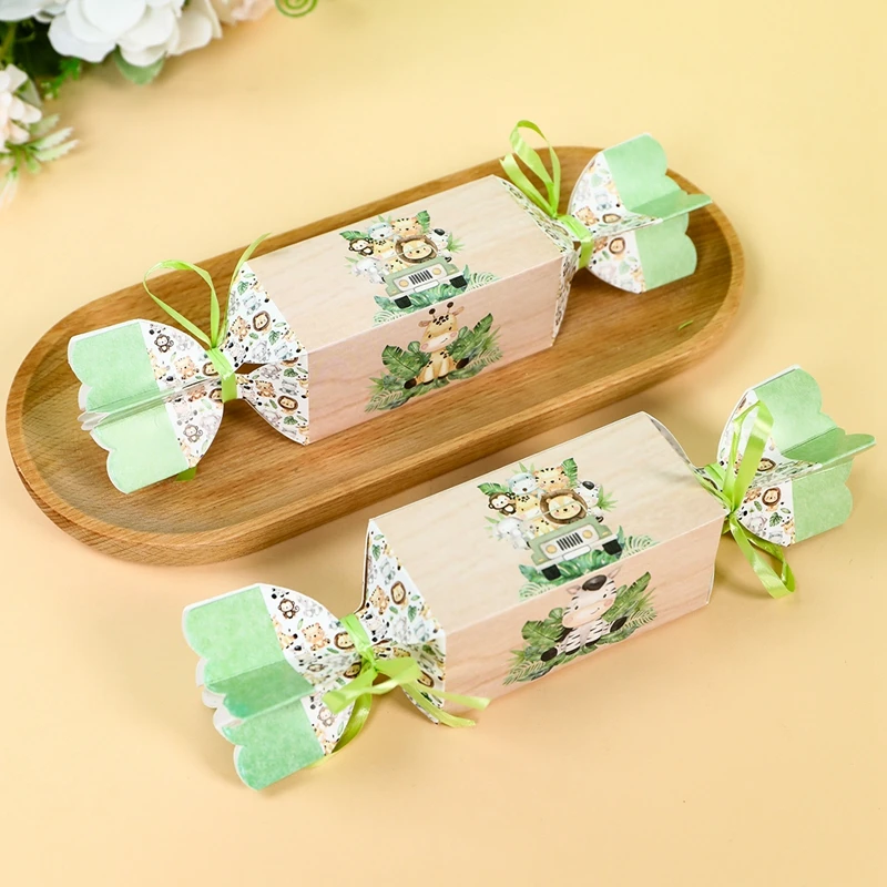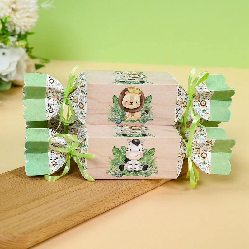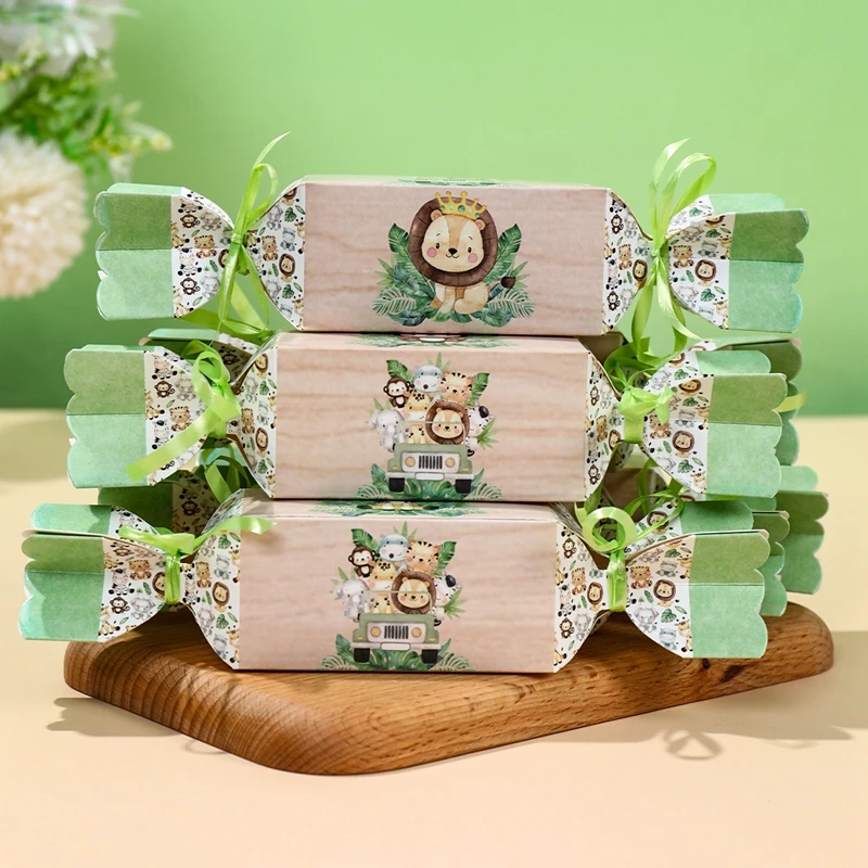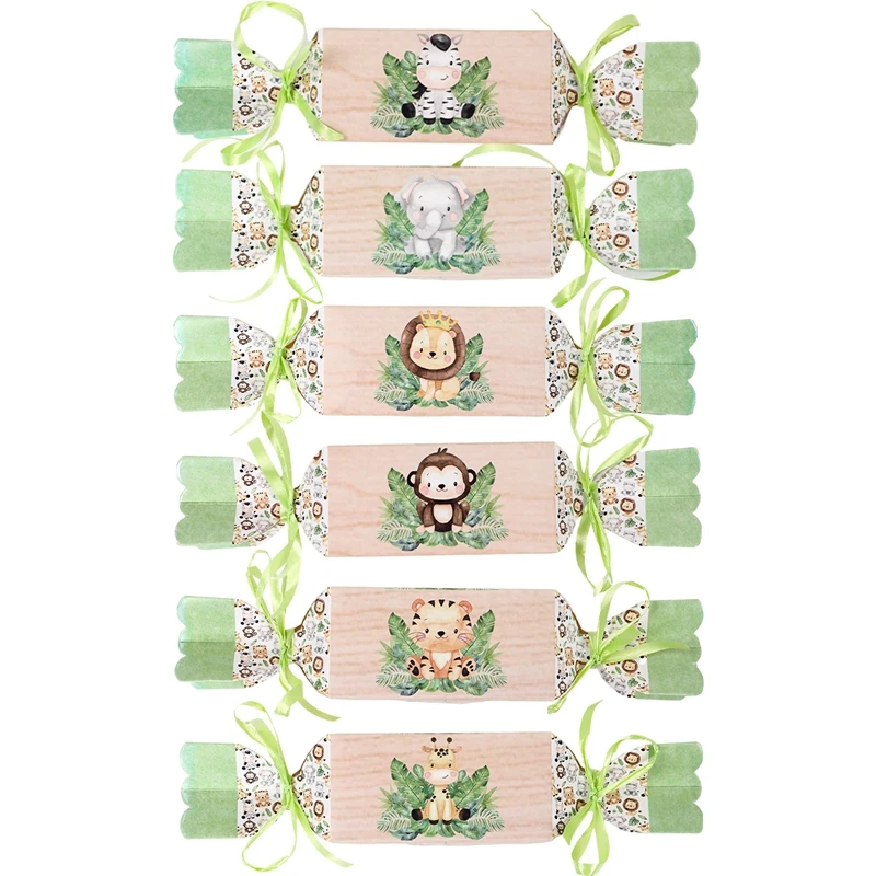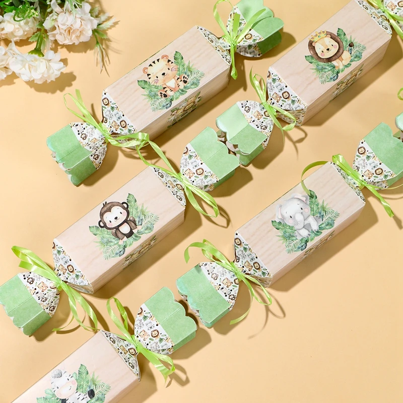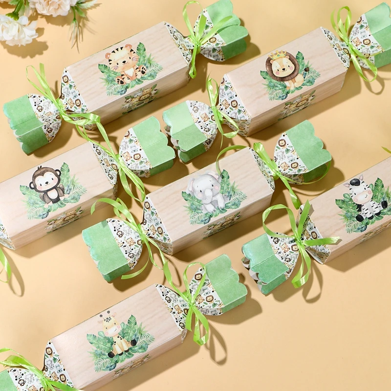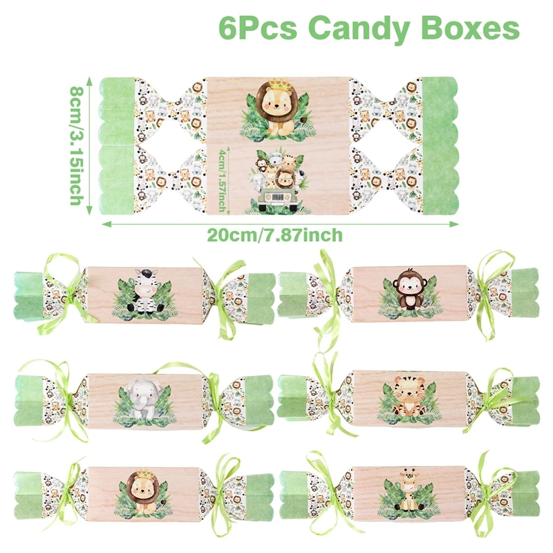 Cajas de dulces de animales de la selva para niños, decoraciones para fiesta de cumpleaños, Safari, 1er salvaje, tema del bosque de la selva, suministros para Baby Shower, 6 uds.