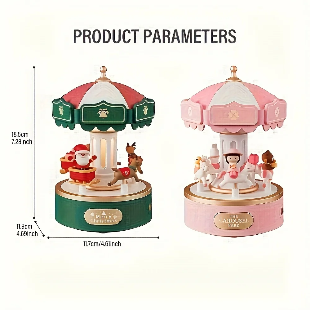 【Material premium】: la caja de música del carrusel navideño está hecha de material ABS PVC de calidad, es resistente, tiene una mano de obra delicada y tiene un largo tiempo de servicio.