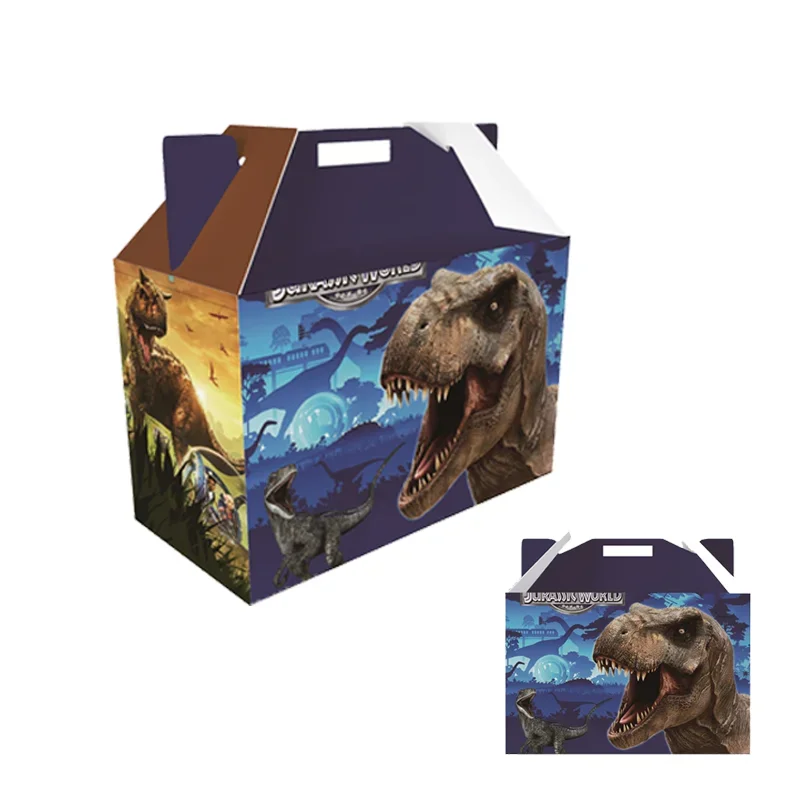 Cajas de recuerdos de fiesta del mundo Jurásico para niños, suministros de decoración de cumpleaños, caja de regalo de dinosaurio, caja de dulces para Baby Shower, caja de pastel pequeña de papel