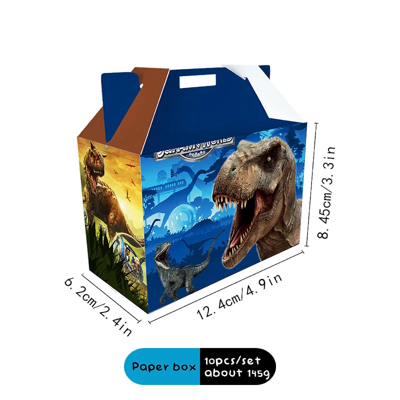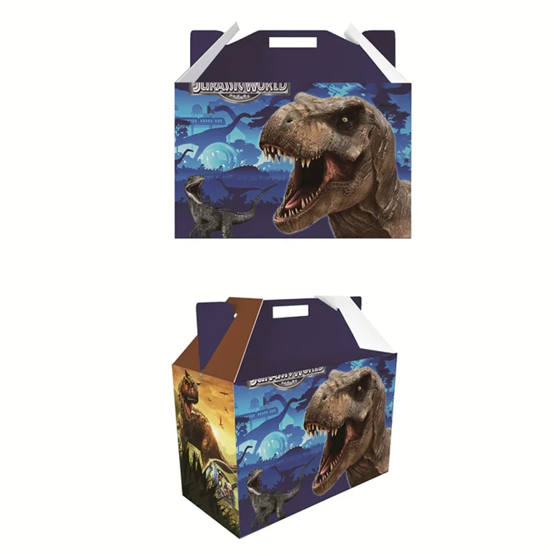 Comprar Cajas de recuerdos de fiesta Jurassic World para niños, suministros de decoración de cumpleaños, caja de regalo de dinosaurio, caja de dulces para Baby Shower, caja de pastel pequeña de papel