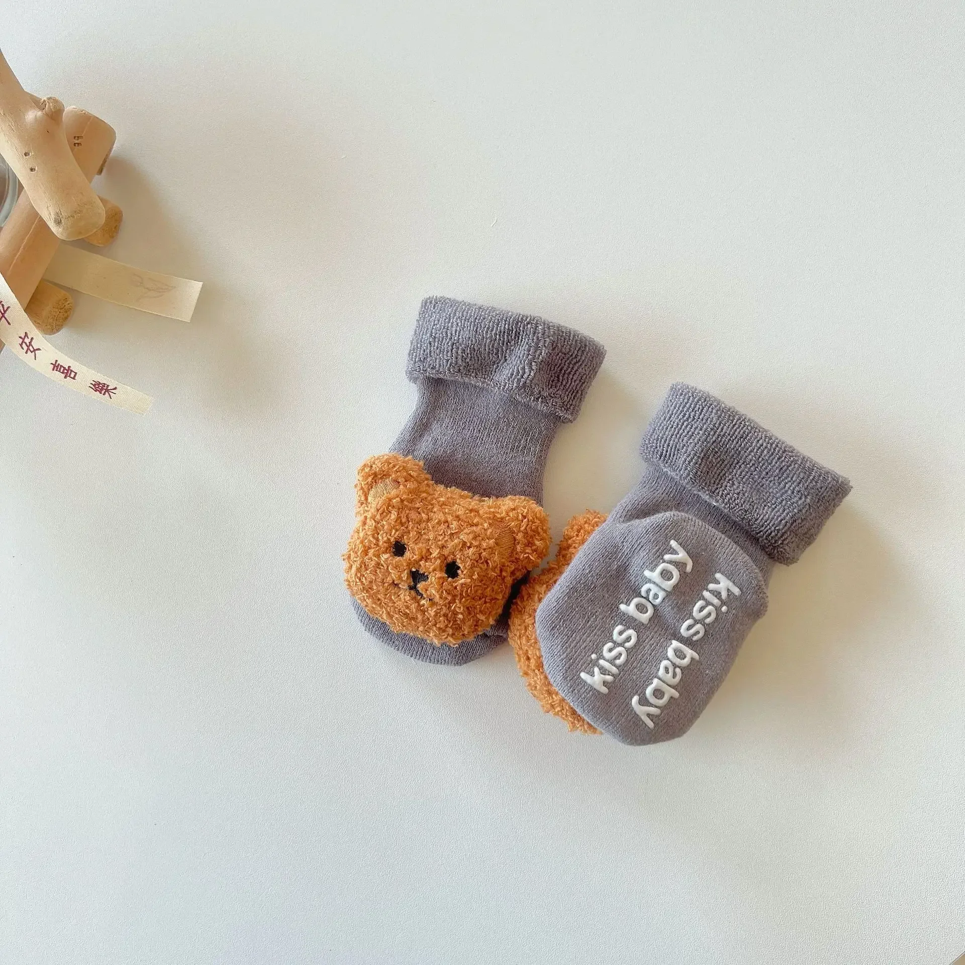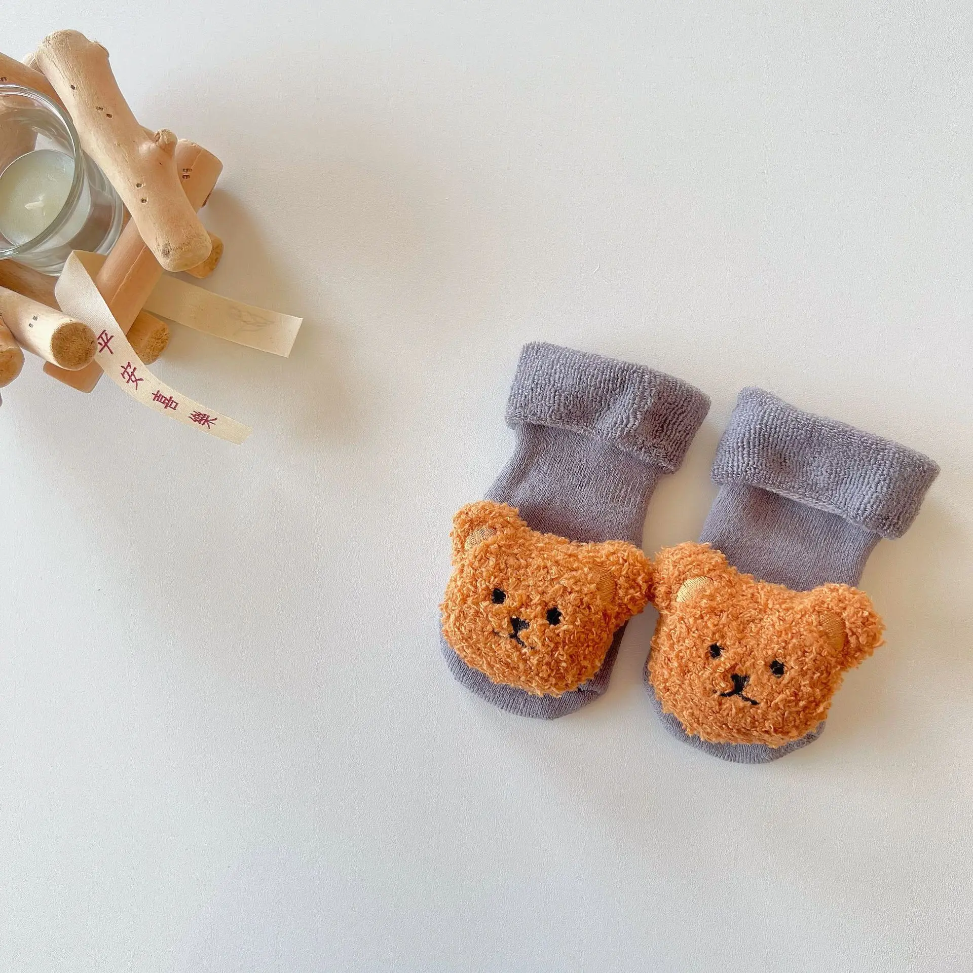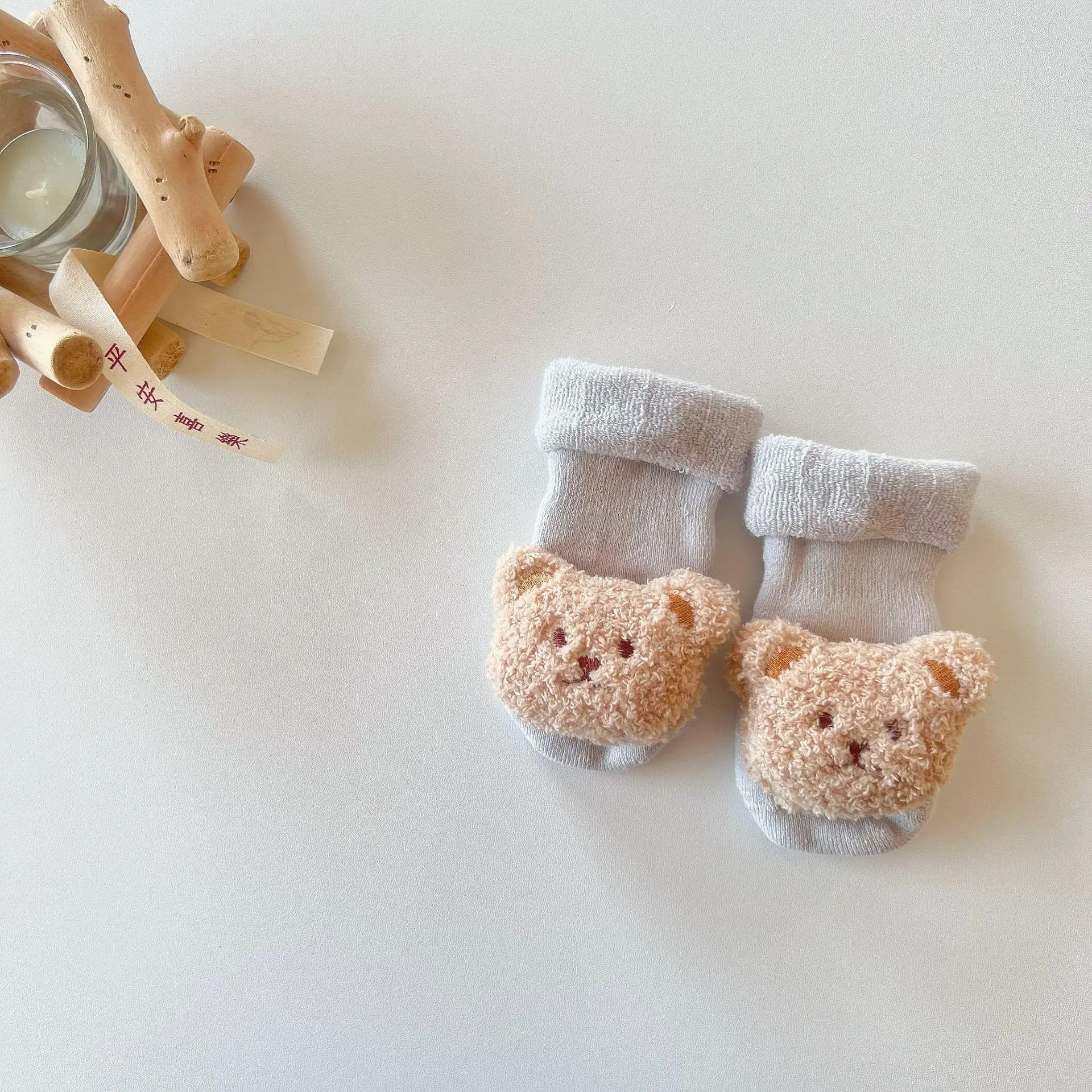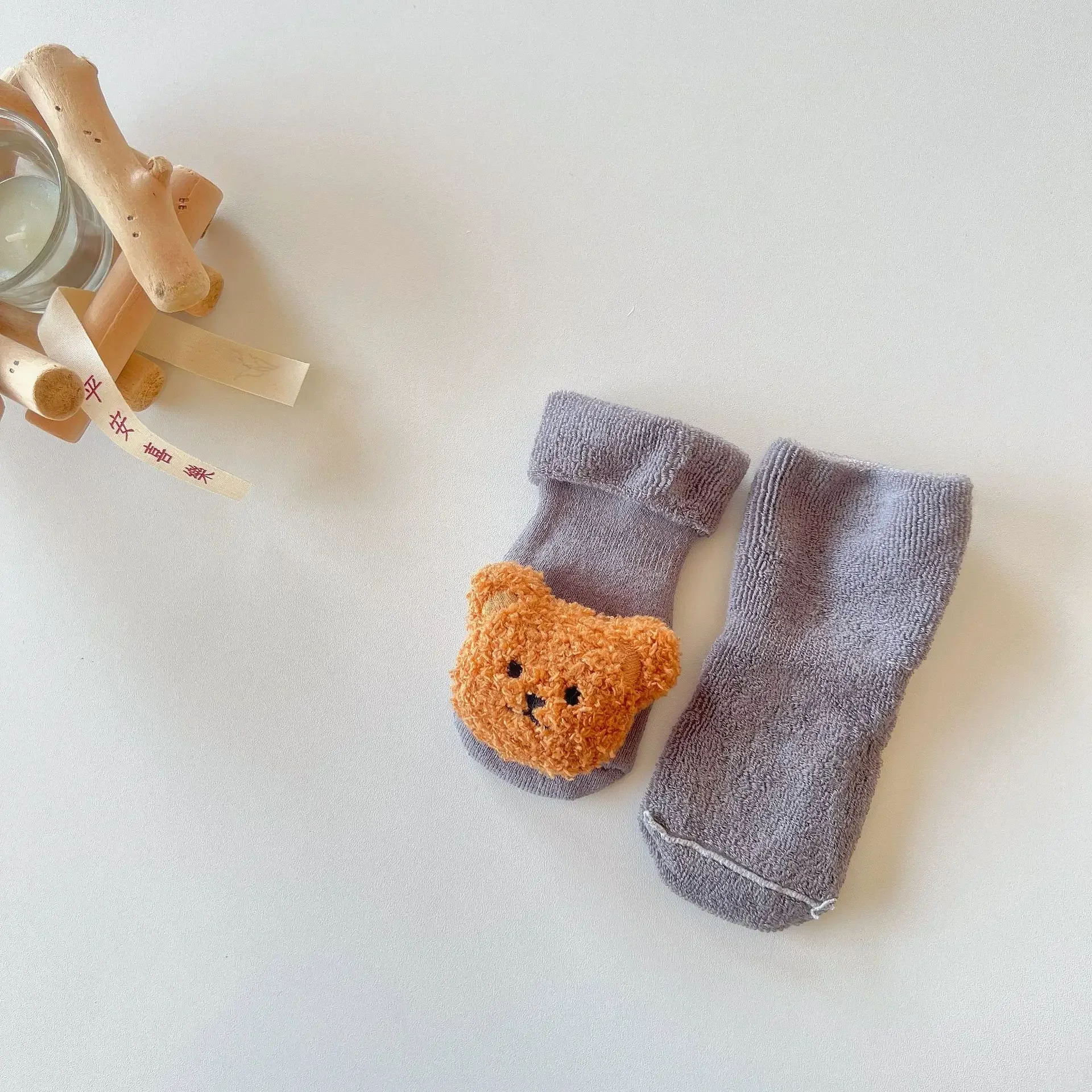Calcetín cálido para bebé, moda Kawaii, muñeca de dibujos animados, oso, Terry Loop, calcetín hasta la pantorrilla para niño pequeño, niña, Otoño Invierno, calcetín antideslizante para chico