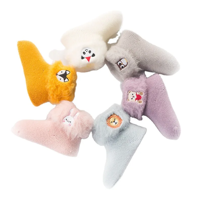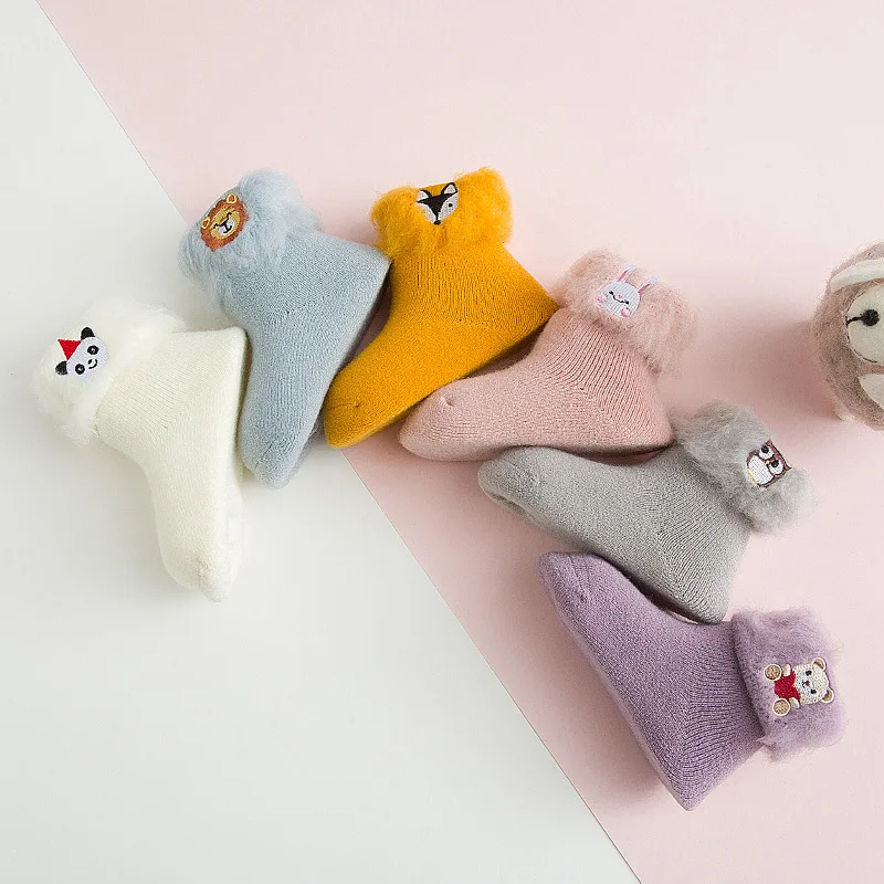 Comprar Calcetín cálido para recién nacido, calcetín de animales de dibujos animados Kawaii para niño pequeño, niño y niña, calcetín de pantorrilla de felpa gruesa para bebé, otoño e invierno, 1 par