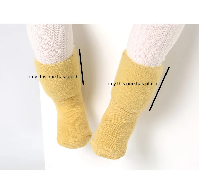 Información: Nota: calcetín de talla L, no hay pegamento en la parte inferior de los calcetines Solo la mitad de los calcetines tienen felpa, furia. Material: algodón, lana Temporada: otoño, invierno Cantidad: 1 par Talla del calcetín: Talla S, edad del bebé: 0-1 año, longitud del pie: 8-11cm (calcetín de suelo antideslizante) Talla M, edad del bebé: 1-3 años, longitud del pie: 12-14cm (Calcetín antideslizante). Talla L, edad del bebé: 3-5 años, longitud del pie: 14-16cm (calcetín normal, sin pegamento en la parte inferior de los calcetines)