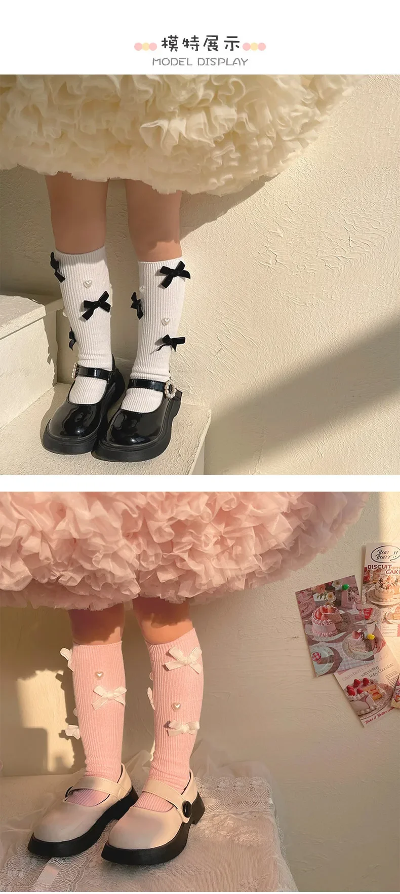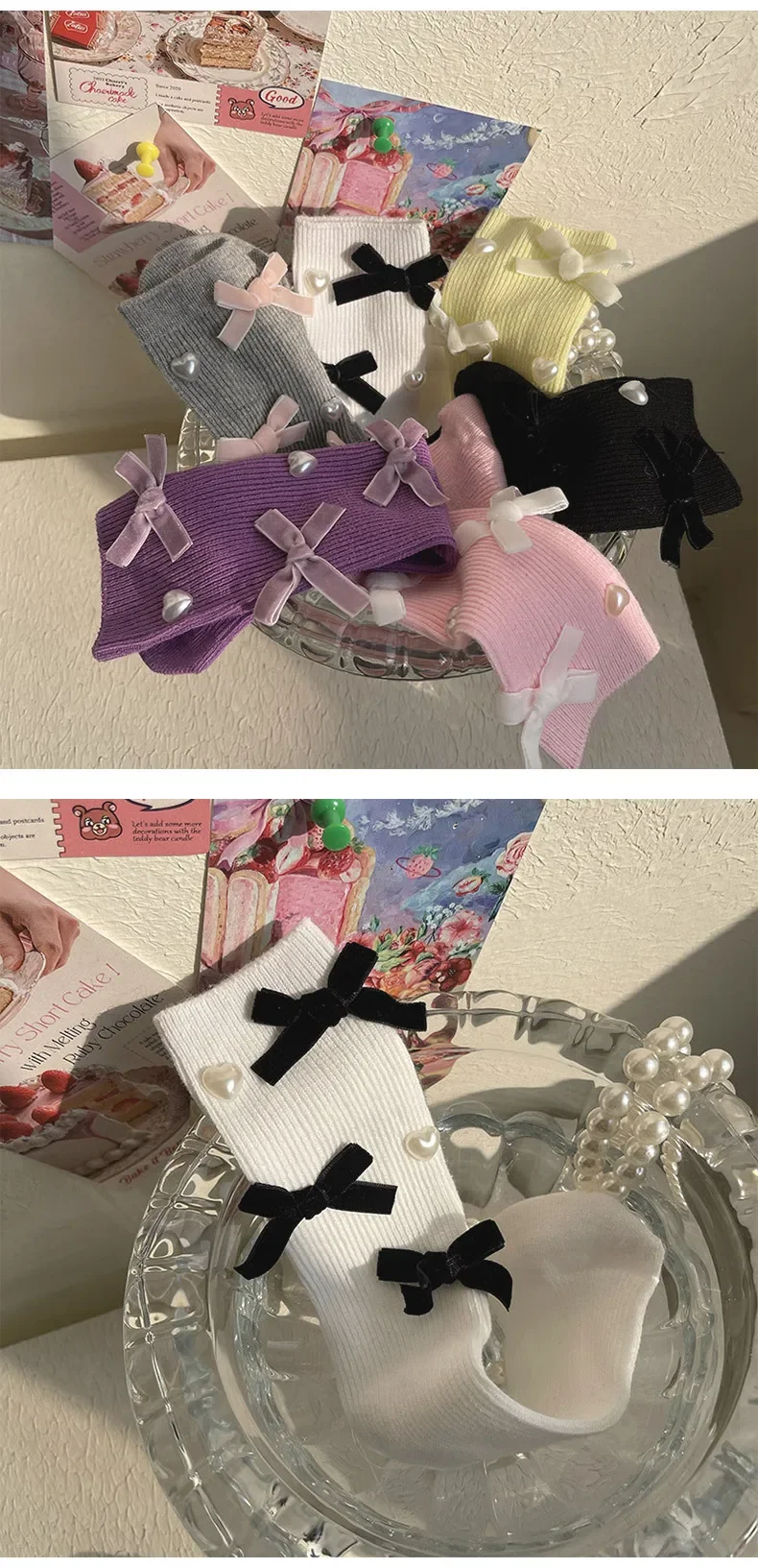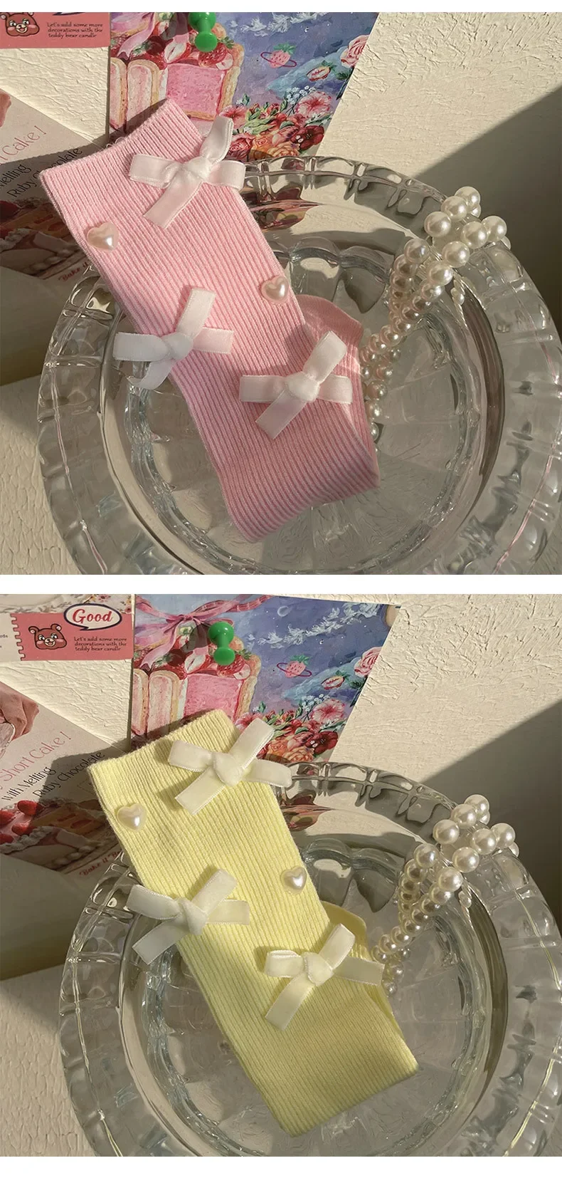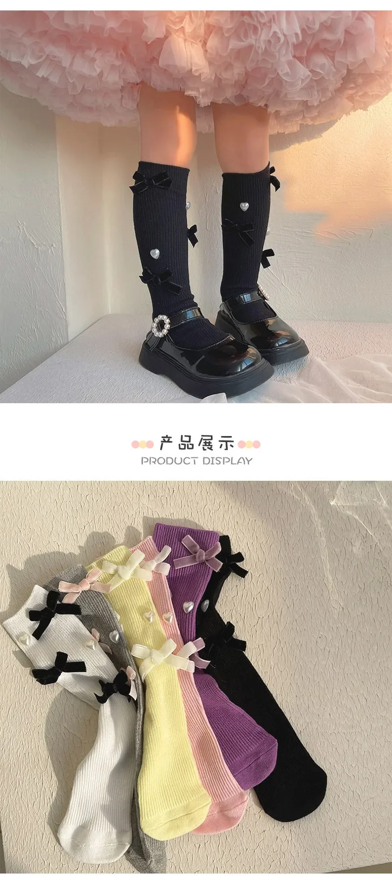 Calcetín coreano Chic hasta la pantorrilla para niños y niñas, calcetín estilo corazón con lazo a la moda, calcetín de algodón suave para escuela, talla única