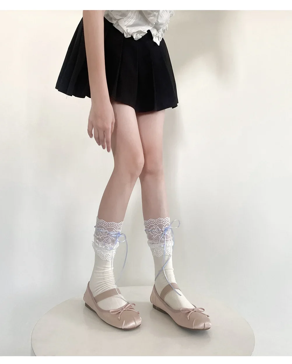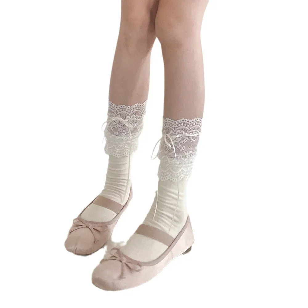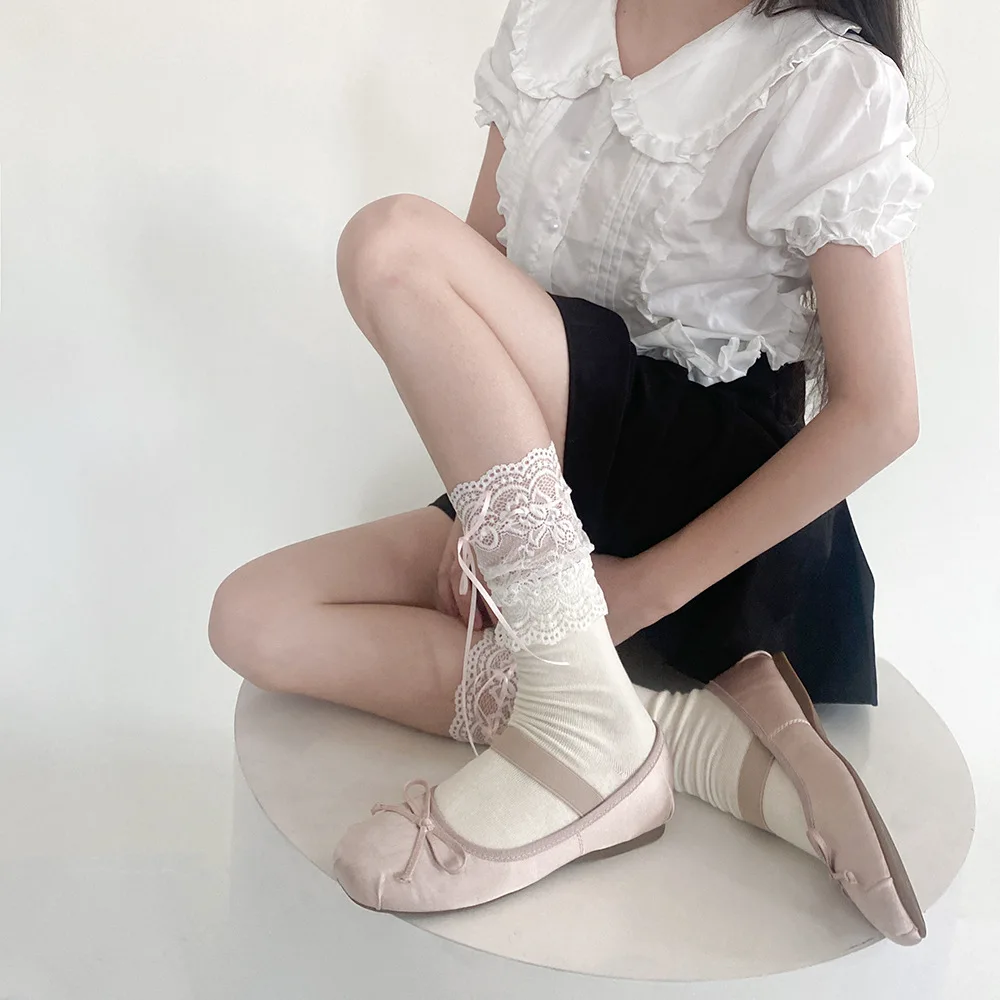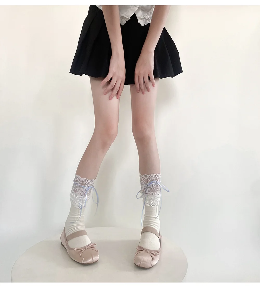 Comprar Calcetín de encaje suave para niña, calcetín de pantorrilla estilo lazo con volantes, moda coreana, verano, escuela, 7-18T, 1 par