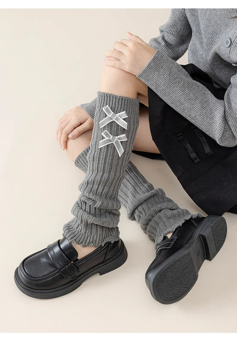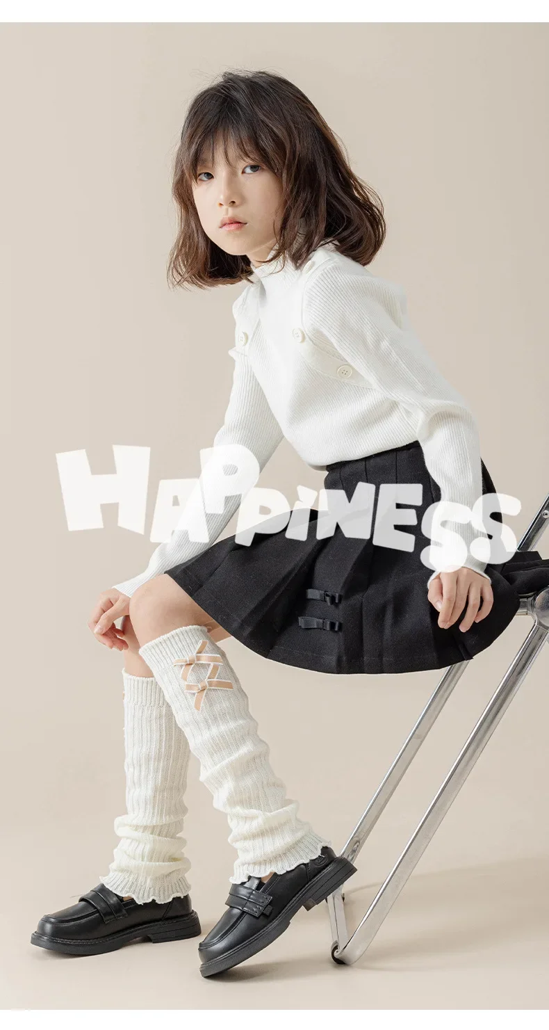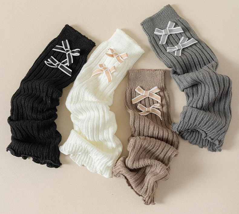 Comprar Calcetín de pantorrilla coreano dulce para niños y niñas, calentadores de piernas de algodón suave con lazo a la moda de Color sólido para niños