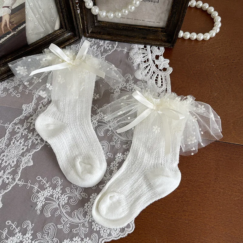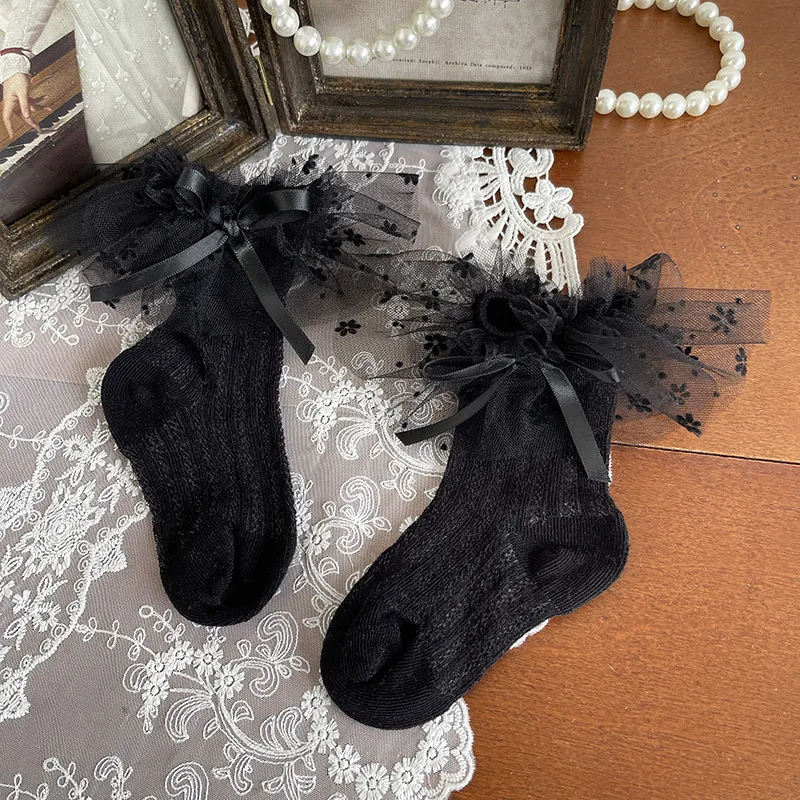 Calcetín de pantorrilla japonés Retro Sakura bordado para niños niña dulce encaje moda princesa Jacquard calcetín verano fino transpirable calcetín