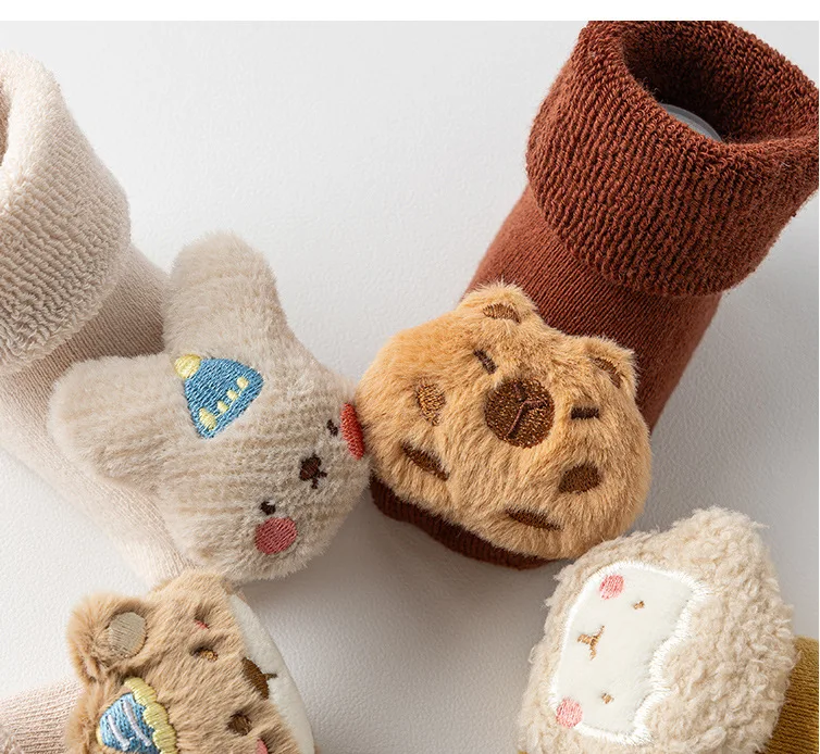 Información: Material: Algodón, peludo Cantidad: 1 par Temporada: otoño, invierno Tamaño del calcetín: Talla XS. Edad del bebé: 0-6 meses. Longitud del pie: 7-9cm Talla S. Edad del bebé: 6-12 meses. Longitud del pie: 9-11cm Talla M. Edad del bebé: 1-3 años. Longitud del pie: 11-13cm