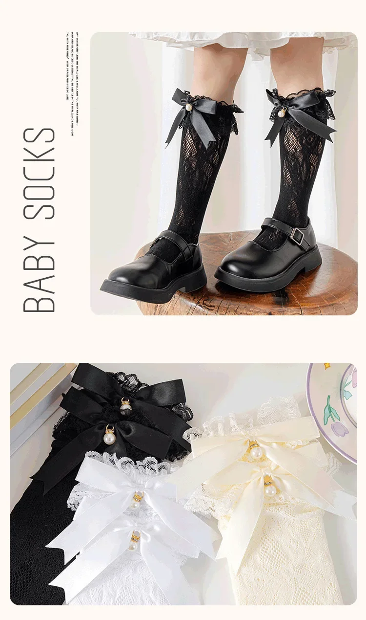 Calcetín Retro de princesa dulce para niños y niñas, calcetín calado de Color sólido con lazo a la moda, calcetín escolar de algodón fino de verano