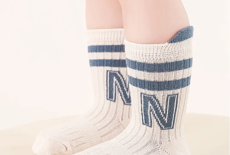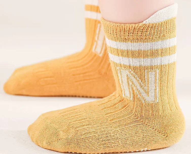 Calcetines de algodón con estampado de letras para bebé, calcetines suaves de tubo medio para recién nacido, calcetines deportivos antideslizantes a rayas de Color sólido para niños y niñas