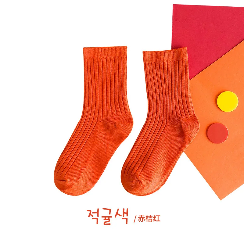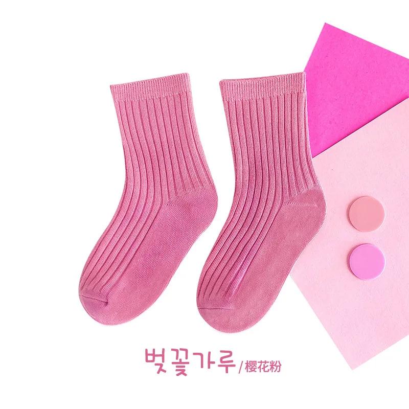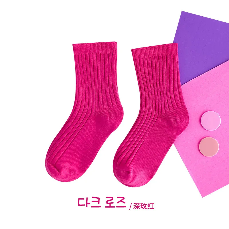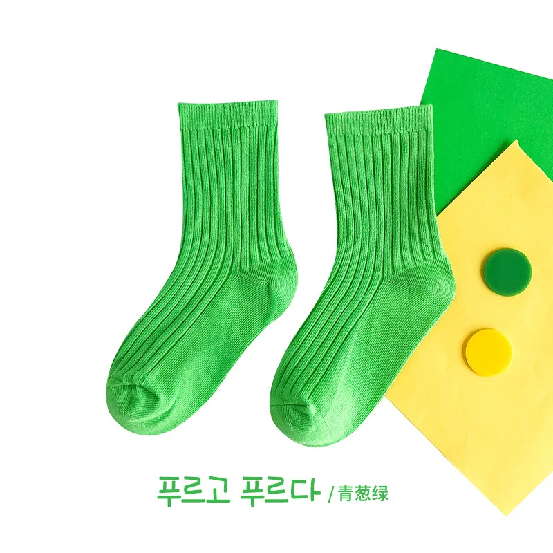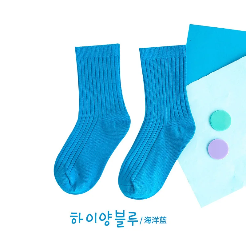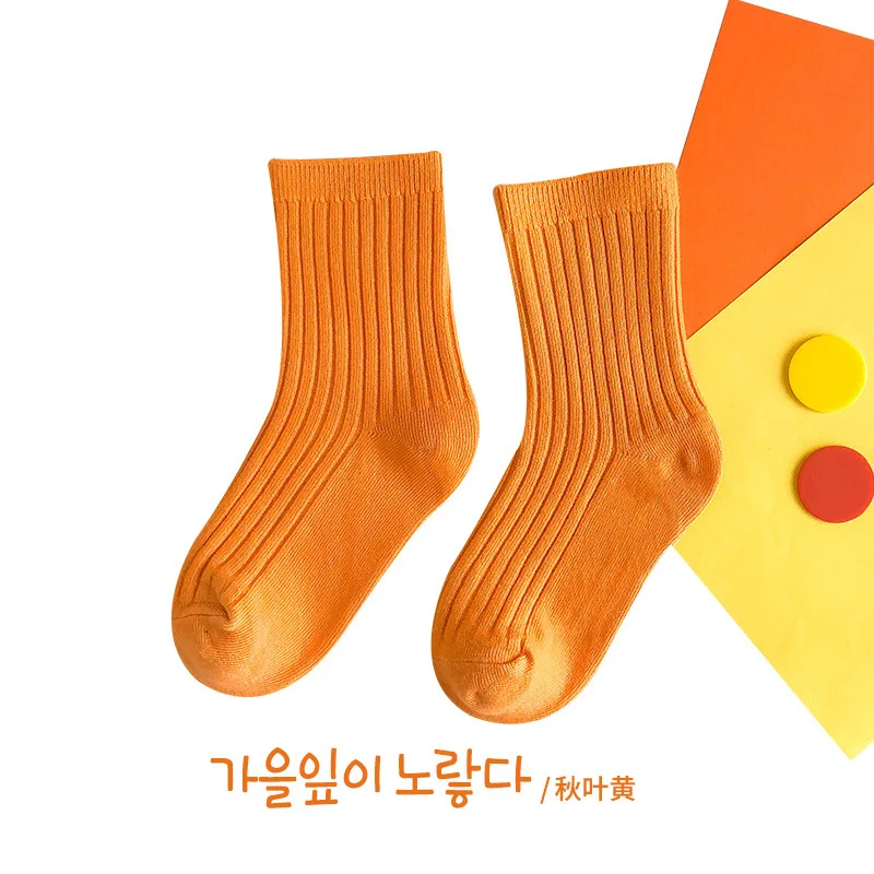 Calcetines de algodón para niños de 1 a 5 años, calcetines sólidos Kint cálidos y transpirables para niños, calcetines escolares de colores caramelo para Otoño e Invierno