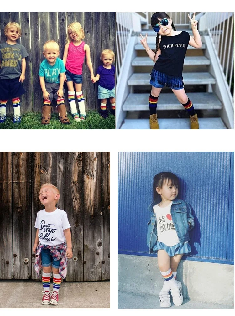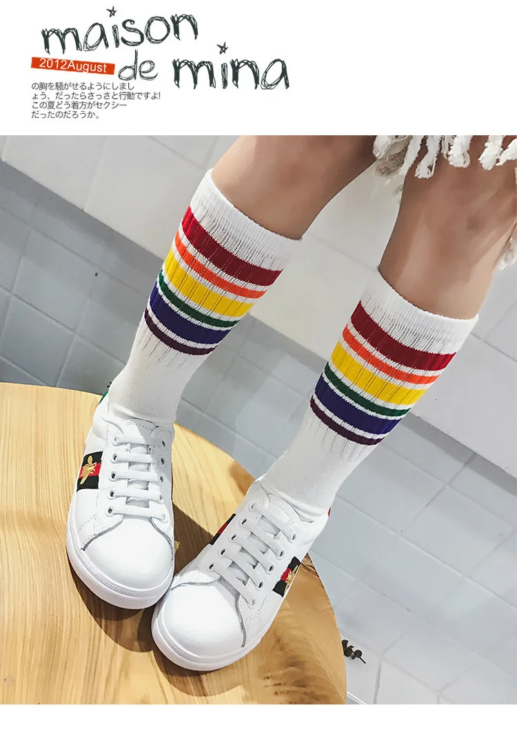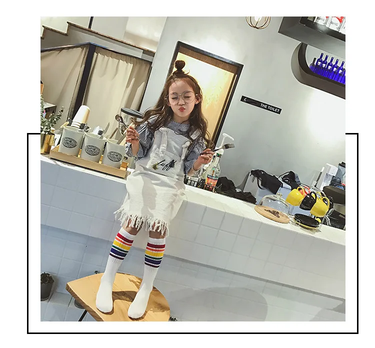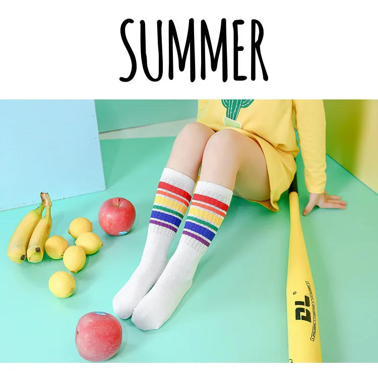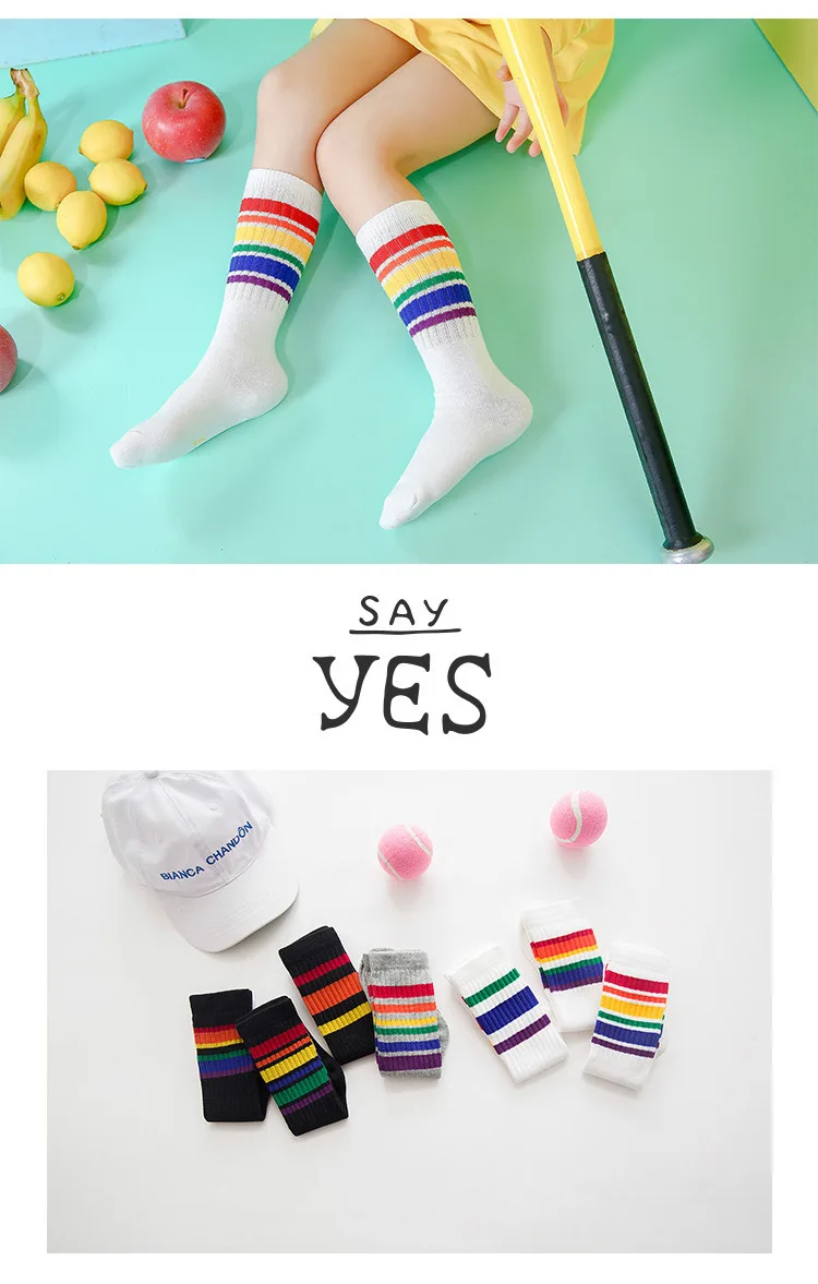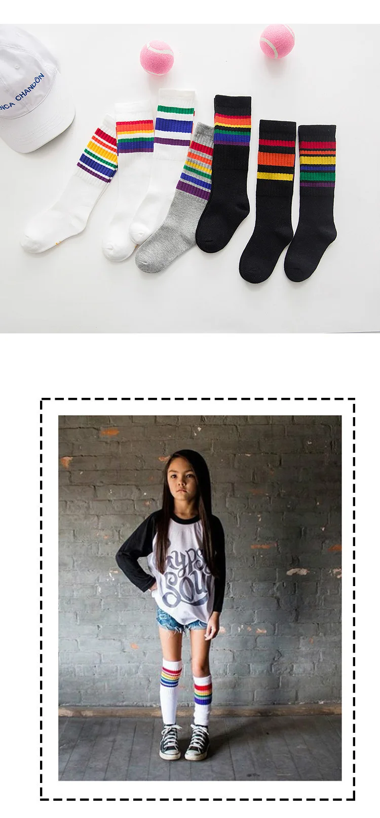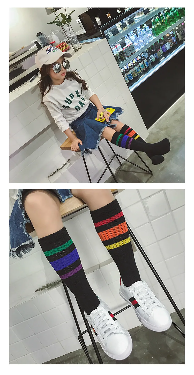 Calcetines de algodón a rayas hasta la rodilla para niños, calcetines blancos para escuela deportiva de fútbol, patines, piernas de tubo largas cálidas para bebés