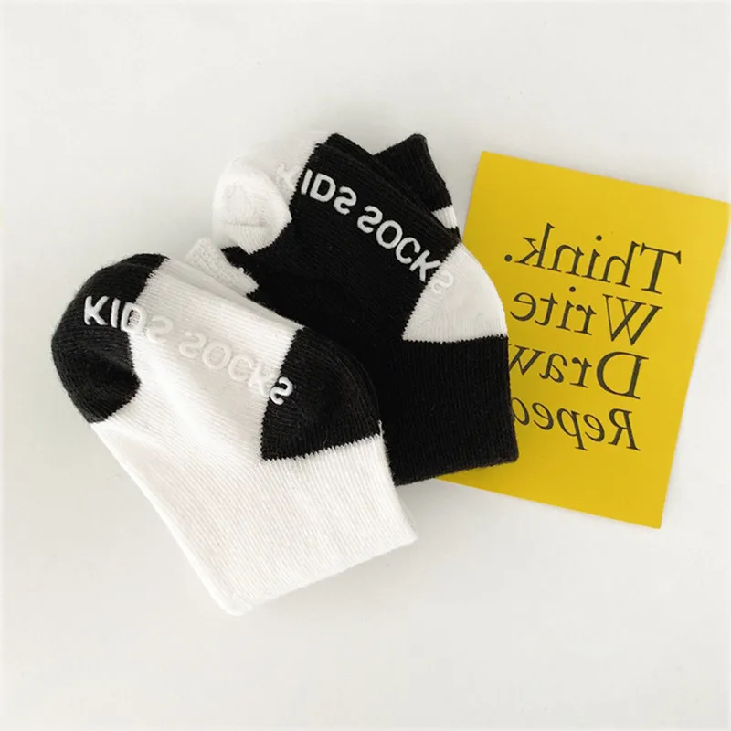 Calcetines de algodón suave para bebé, medias a rayas blancas y negras, antideslizantes, primavera, otoño e invierno