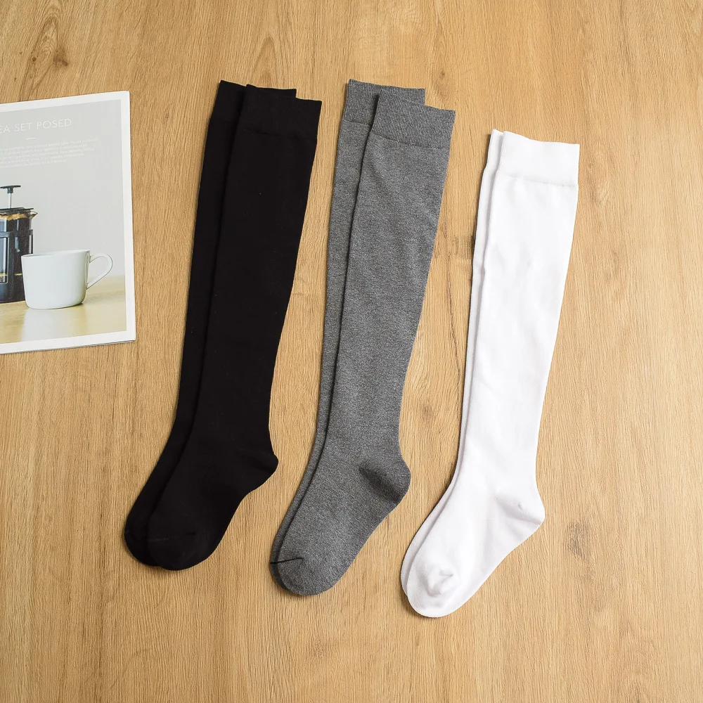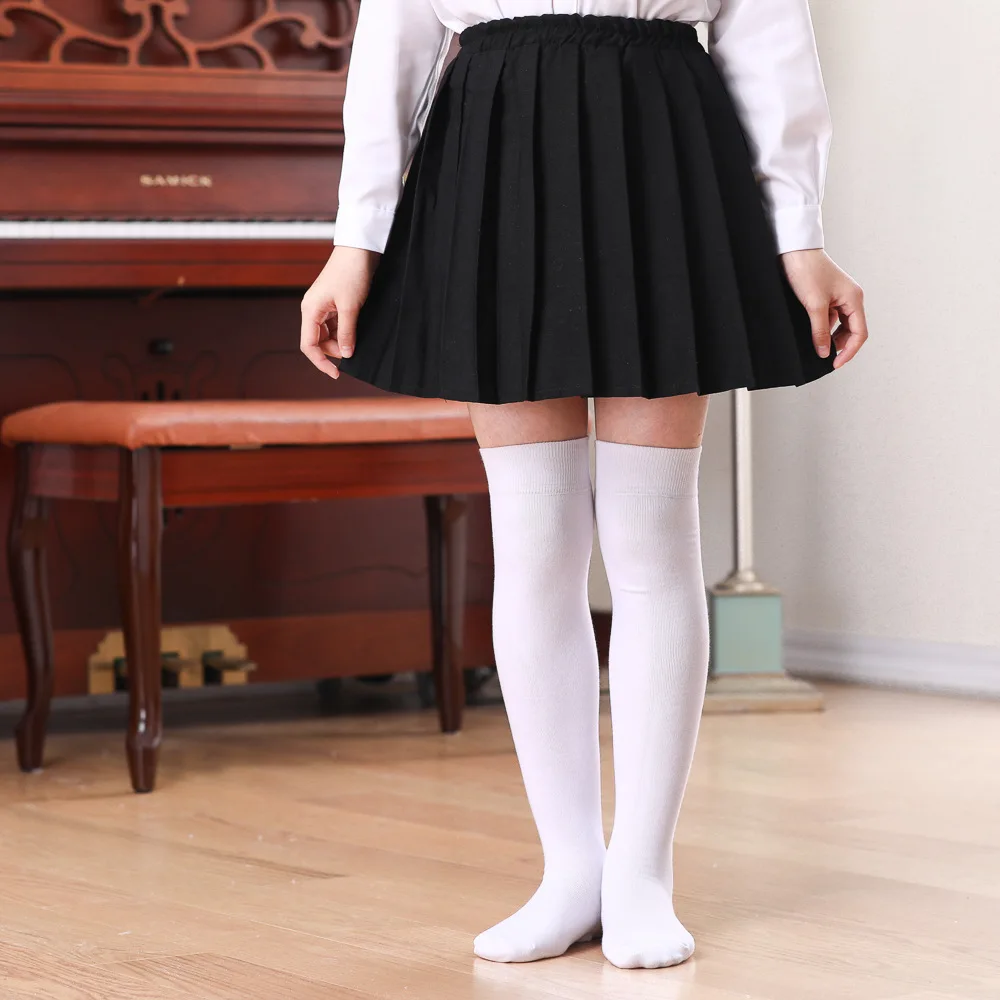 Calcetines altos de algodón para niños y niñas, medias por encima de la rodilla informales negras a la moda para la escuela, calcetines largos elásticos para niños para primavera y otoño