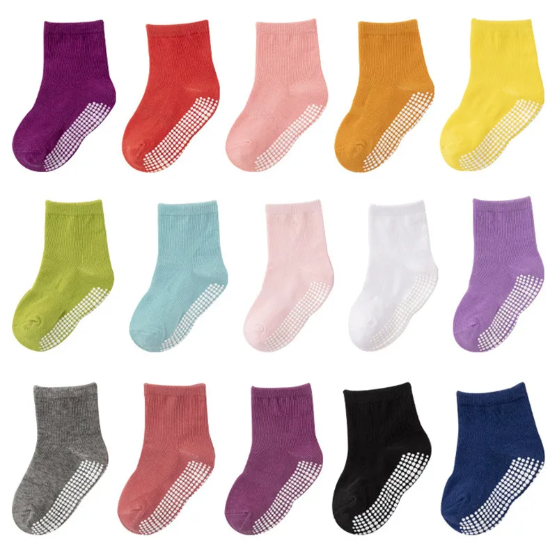Comprar Calcetines antideslizantes de algodón para niño y niña, medias suaves y transpirables de Color sólido para primavera y otoño, lote de 24 pares