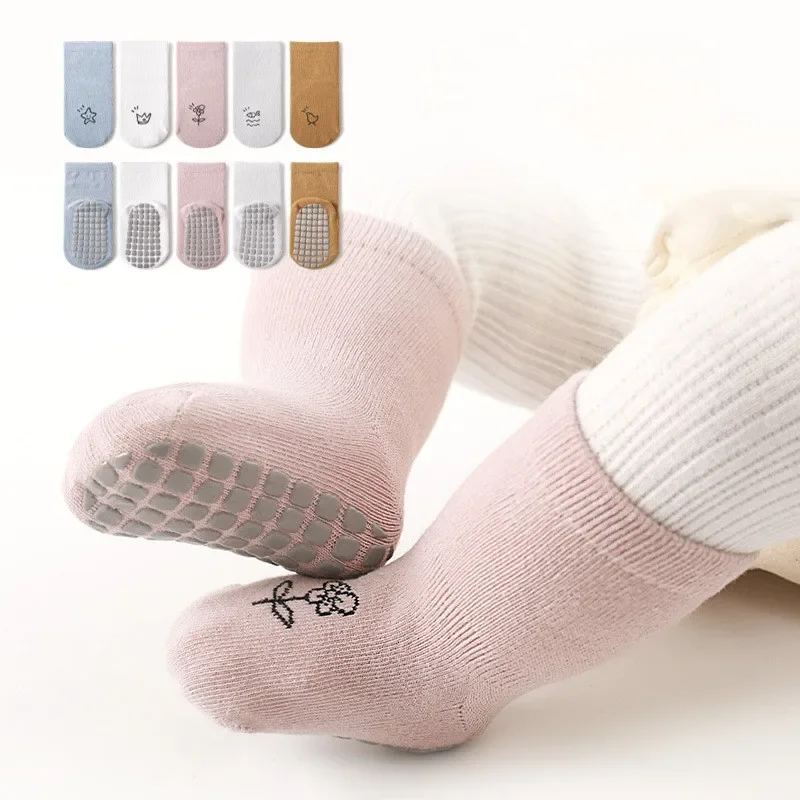 Comprar Calcetines antideslizantes para bebé, calcetines hasta la pantorrilla con agarre para primavera y otoño para recién nacidos y niños pequeños, bonitos calcetines Unisex con dibujos animados para niños, suelo interior para niños