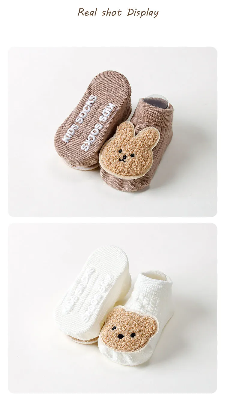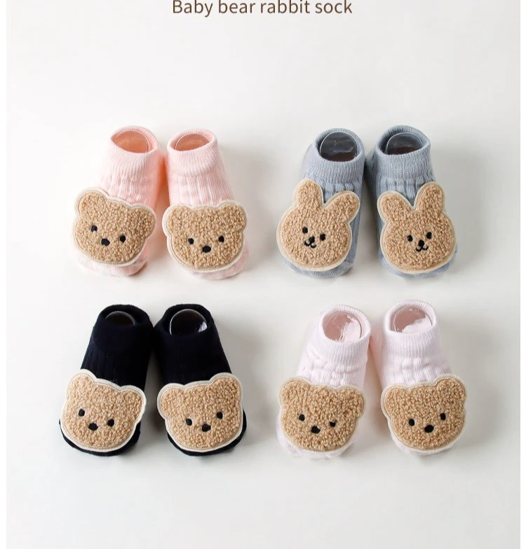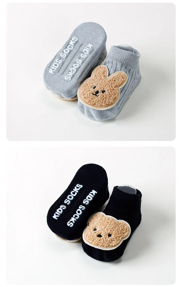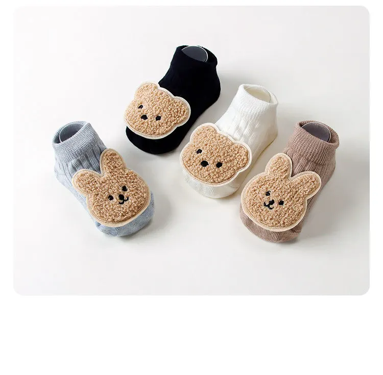 Calcetines antideslizantes para bebé recién nacido, calcetines tobilleros con estampado de oso bonito, suela antideslizante, calcetín de algodón suave para primavera y otoño