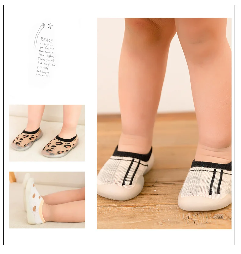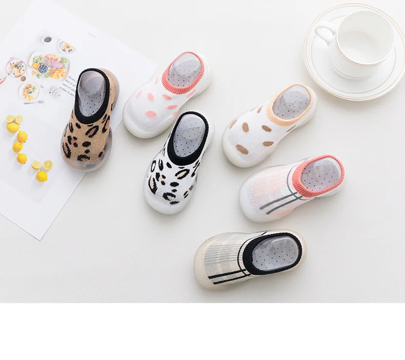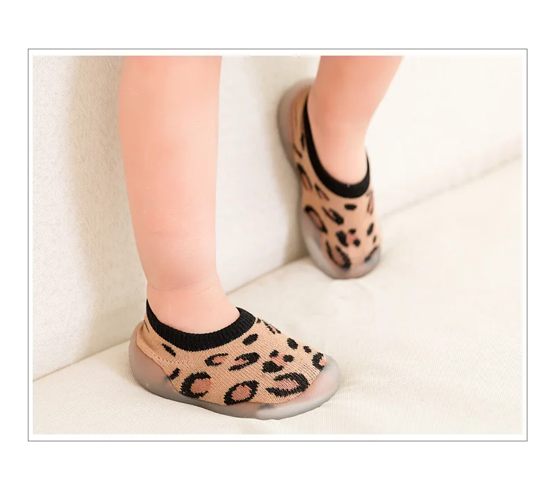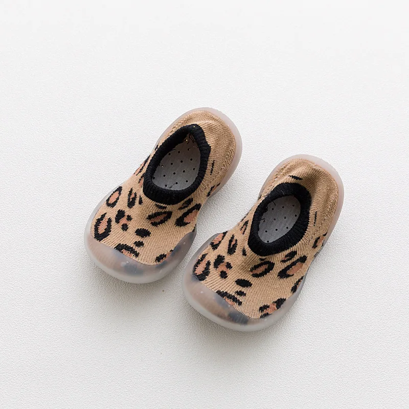 Verano primavera leopardo fondo suave antideslizante piso niño niña niño zapatos calcetines con suelas de goma transparentes niños bebéTamaño