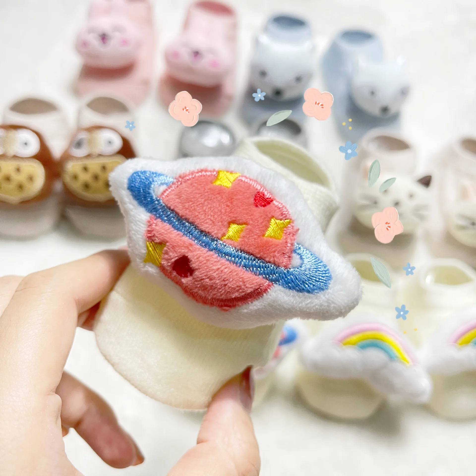 Comprar Calcetines antideslizantes de goma para recién nacido, medias de algodón con dibujos animados en 3D, para bebés y niñas de 0 a 3 años