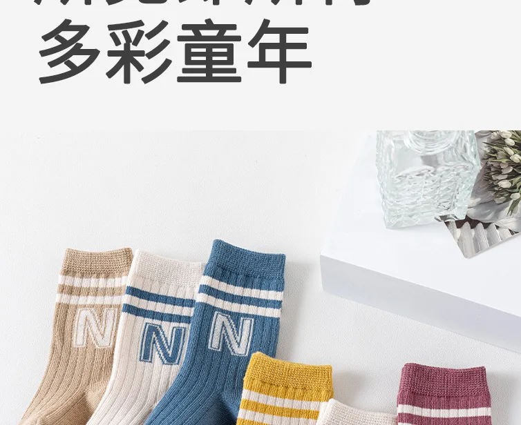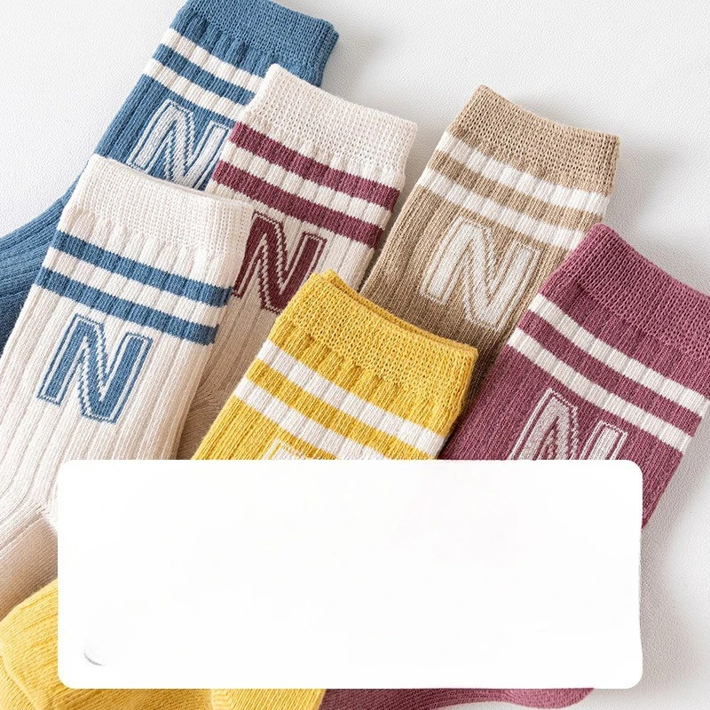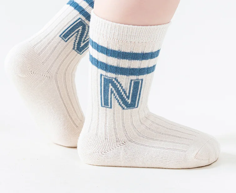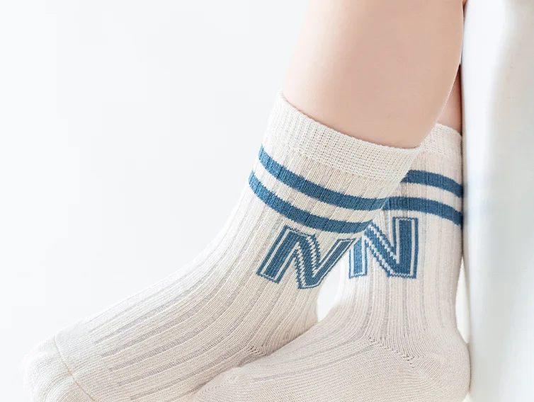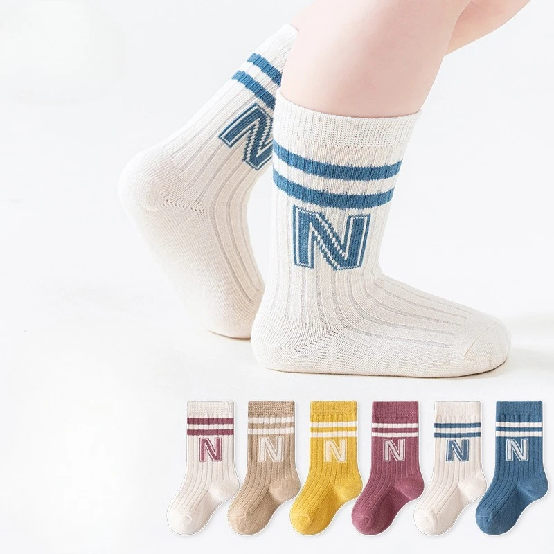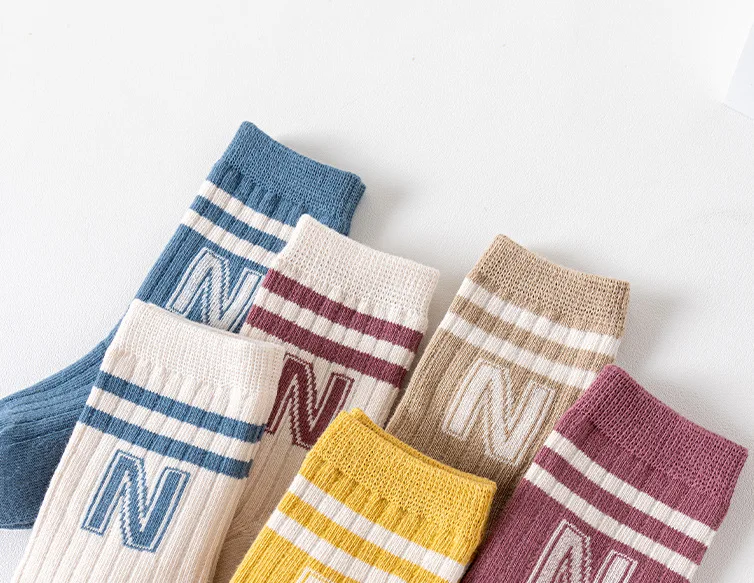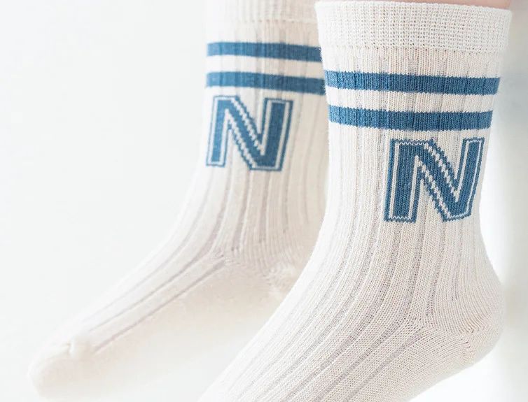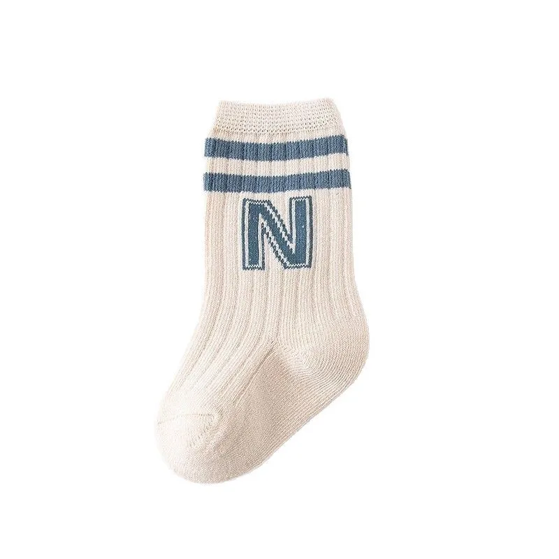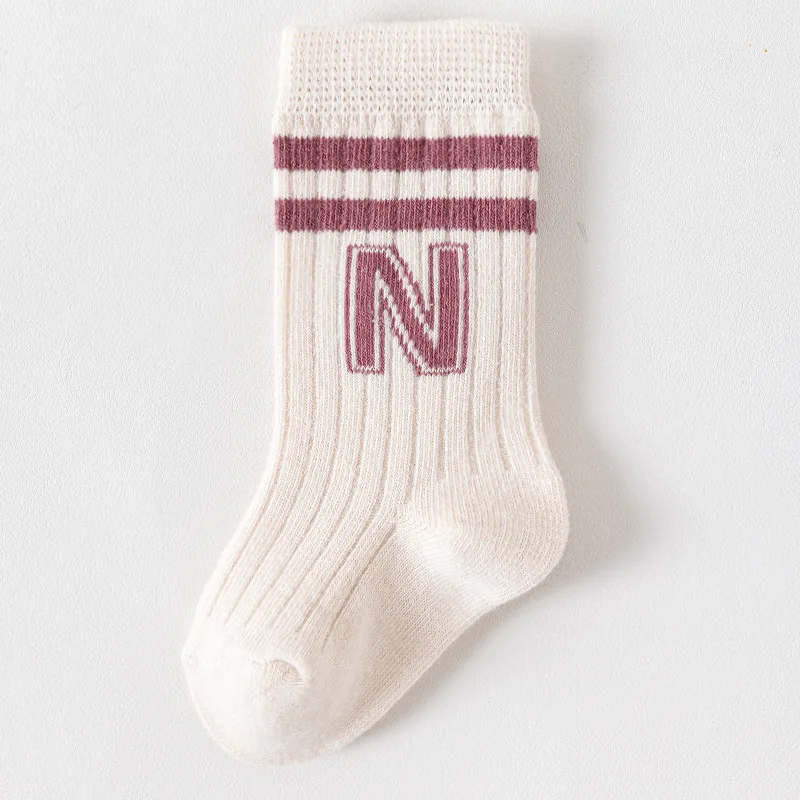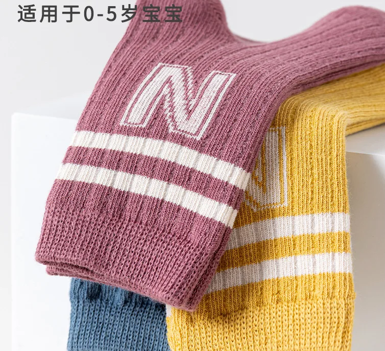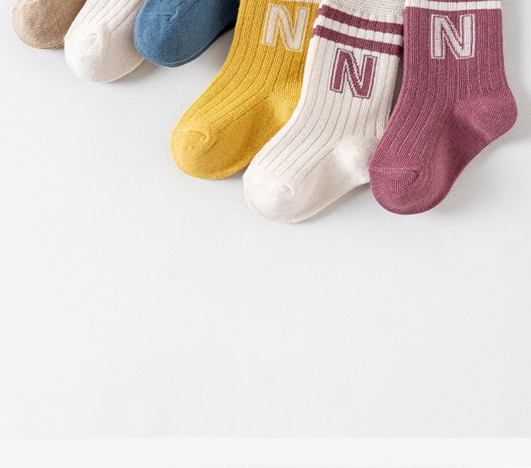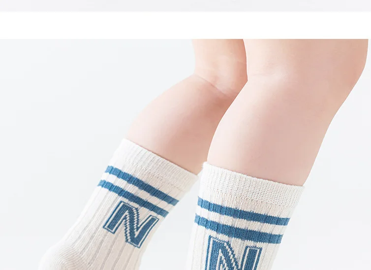 Comprar Calcetines de bebé de punto de algodón suave con letras, medias de tubo medio para bebé, calcetines largos para niños pequeños, accesorios para niñas
