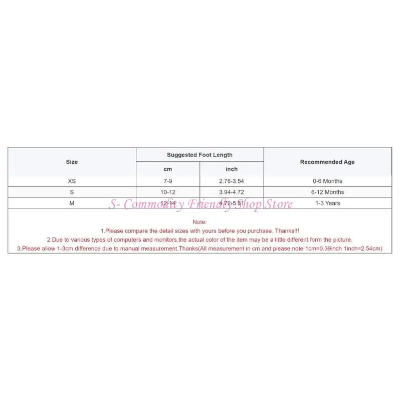 Talla S: Longitud del pie sugerida: 10-12 cm (3,94-4,72 pulgadas) Edad recomendada: 6-12 meses