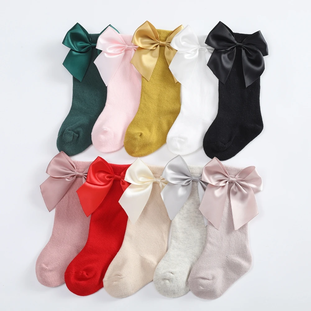 Calcetines para bebés y niños pequeños de 0 a 3 años, calcetines largos bonitos de algodón con lazo sólido, calcetines transpirables de malla informales suaves para niños