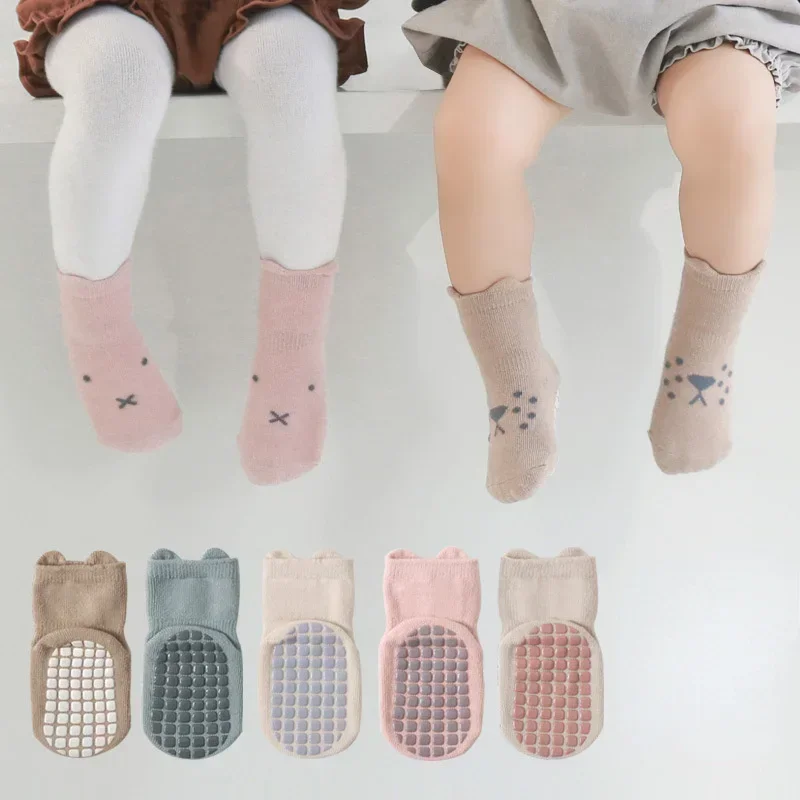 Calcetines bonitos de algodón para el suelo del bebé, zapatos antideslizantes para caminar, zapatos informales para el suelo, calcetines antideslizantes para niños y niñas