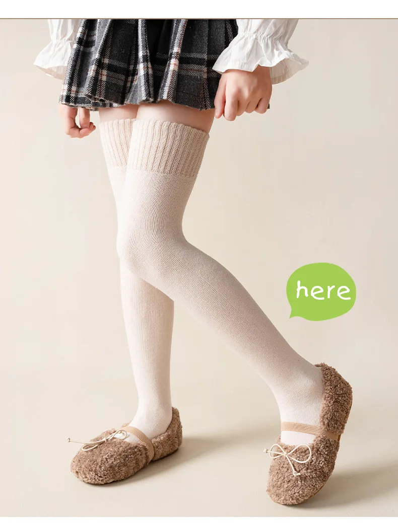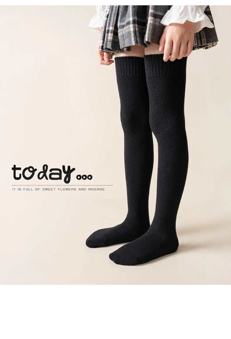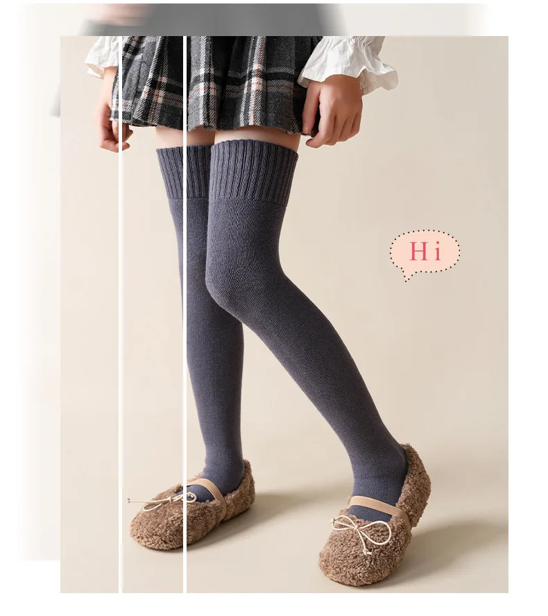 Calcetines cálidos hasta la rodilla para niños y niñas, calentadores de piernas de felpa gruesos por encima de la rodilla, medias de Color sólido, calcetín escolar para niños