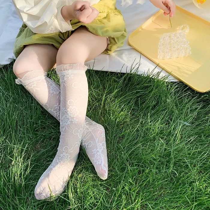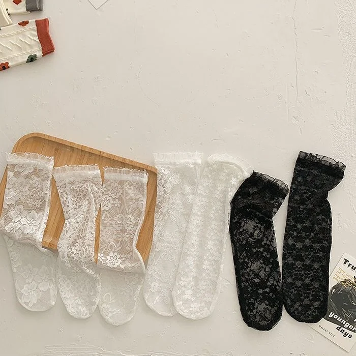 Calcetines coreanos con volantes de encaje Retro para niños, medias de pantorrilla encantadoras para niños, medias de princesa finas y transpirables con volantes, cosas para niños