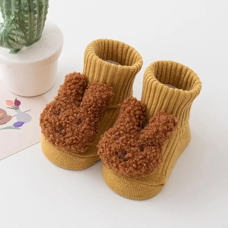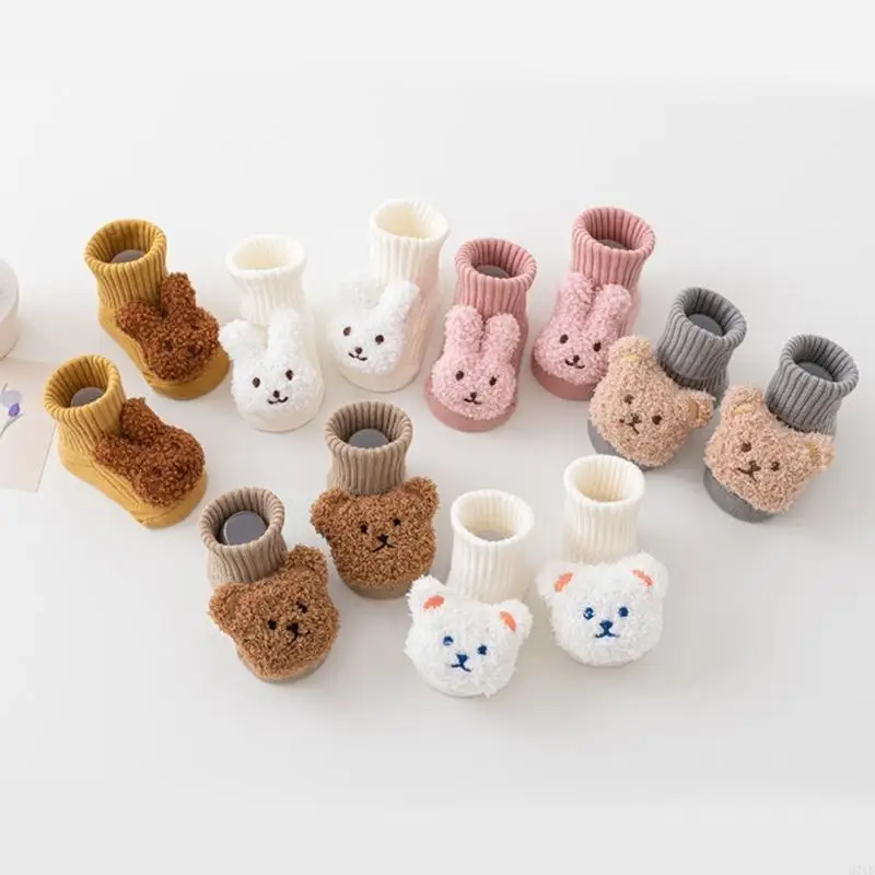 Calcetines D7YD dibujos animados oso/conejo para bebé, suelas antideslizantes, calcetines transpirables para primeros - imagen 3