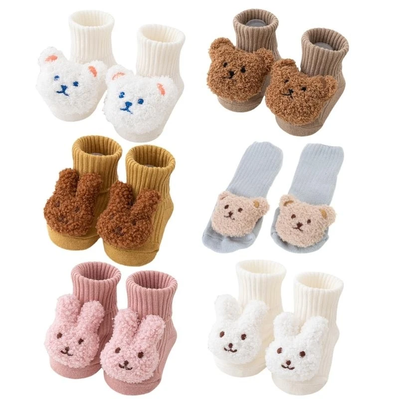 Calcetines D7YD dibujos animados oso/conejo para bebé, suelas antideslizantes, calcetines transpirables para primeros