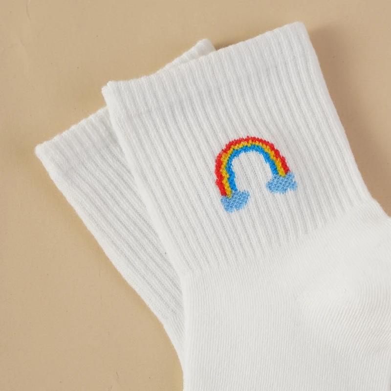 Comprar Calcetines deportivos blancos, nuevo estilo, bonitos calcetines de tubo medio con patrón de bordado de dibujos animados, calcetines simples transpirables y respetuosos con la piel para niños