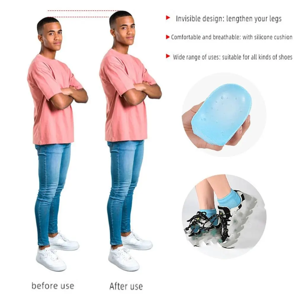 Unique Design---After Putting It On, Put On The Socks, No One Will Notice That You Are Wearing Heightening Insoles, No One Will Notice Your Shoes, It Is Very Natural. Soft Silicone Material Protects The Heel And Provides Good Shock Absorption
