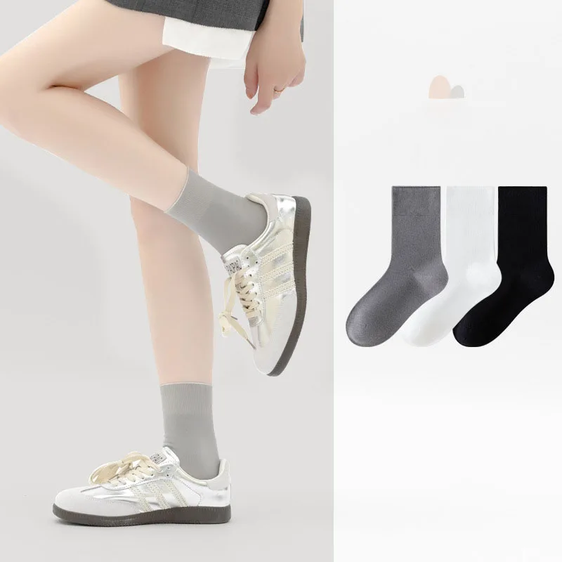 Comprar Calcetines deportivos de tubo medio sin hueso para mujer adulta, medias Retro sólidas que absorben el sudor, tacto suave, 23-25cm, otoño