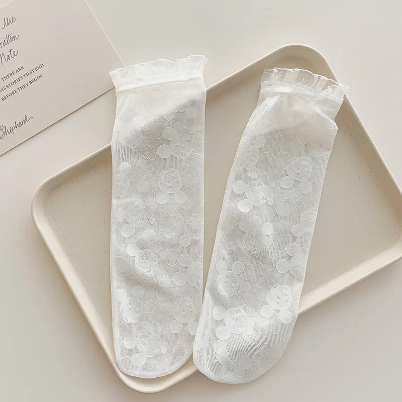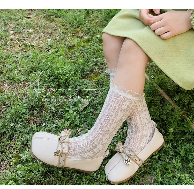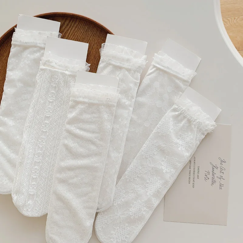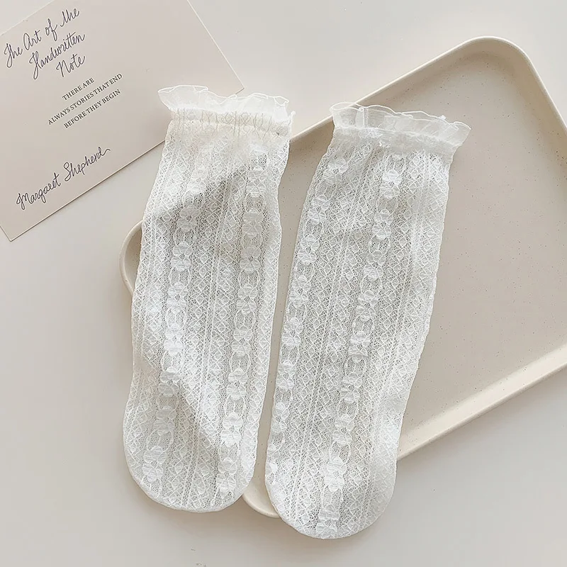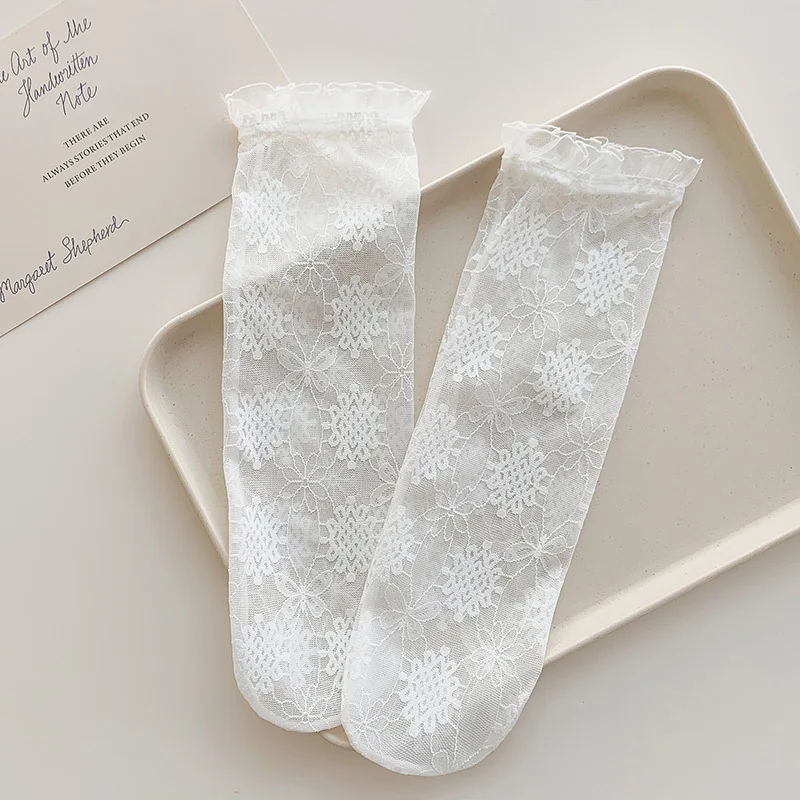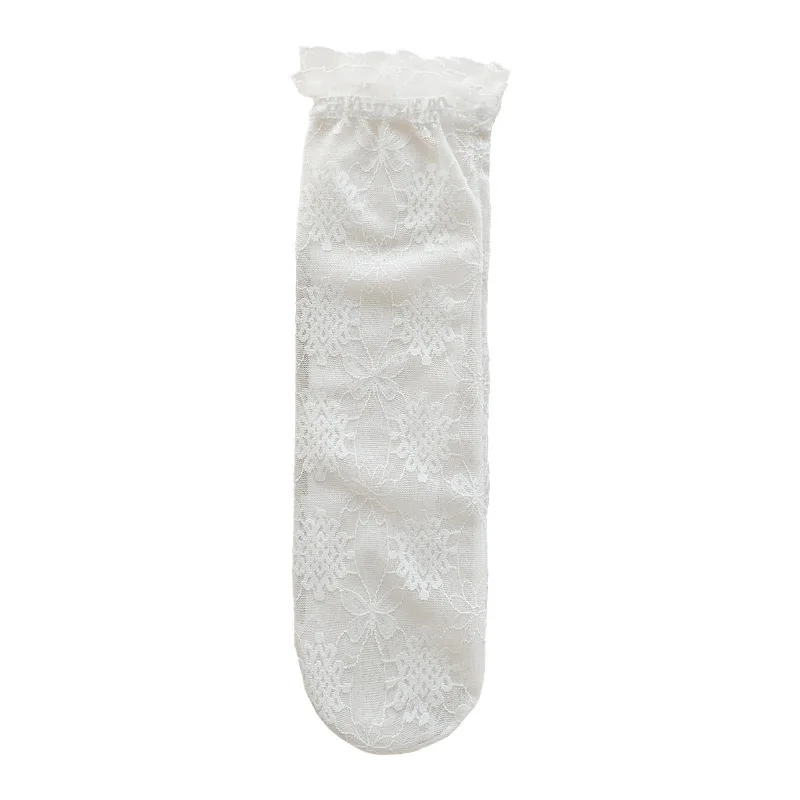 Comprar Calcetines de encaje con volantes para niñas, medias de rejilla suaves y finas, color blanco, estilo Floral, accesorios de tela para verano