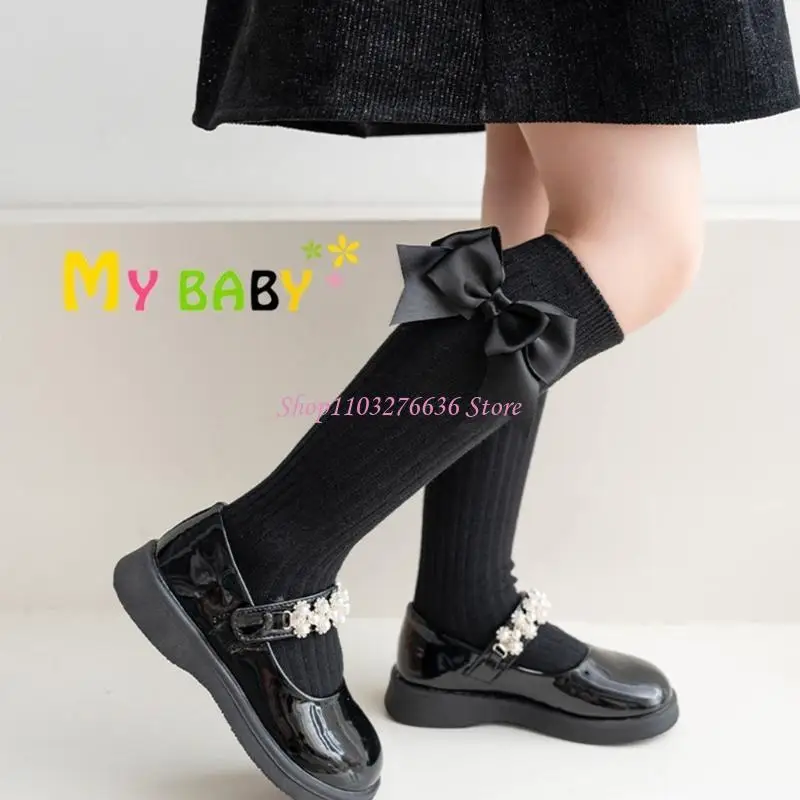 Características:OOTDTYMejora el atuendo de tu hijo con estos calcetines hasta la rodilla, uniformes escolares, calcetines para fiestas, con diseños de lazos grandes.