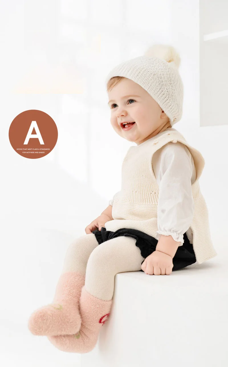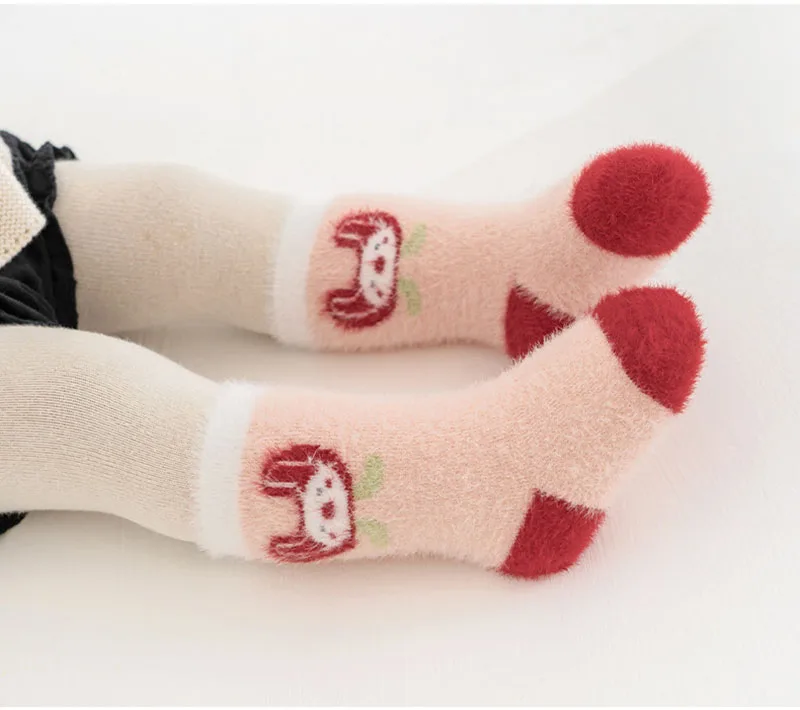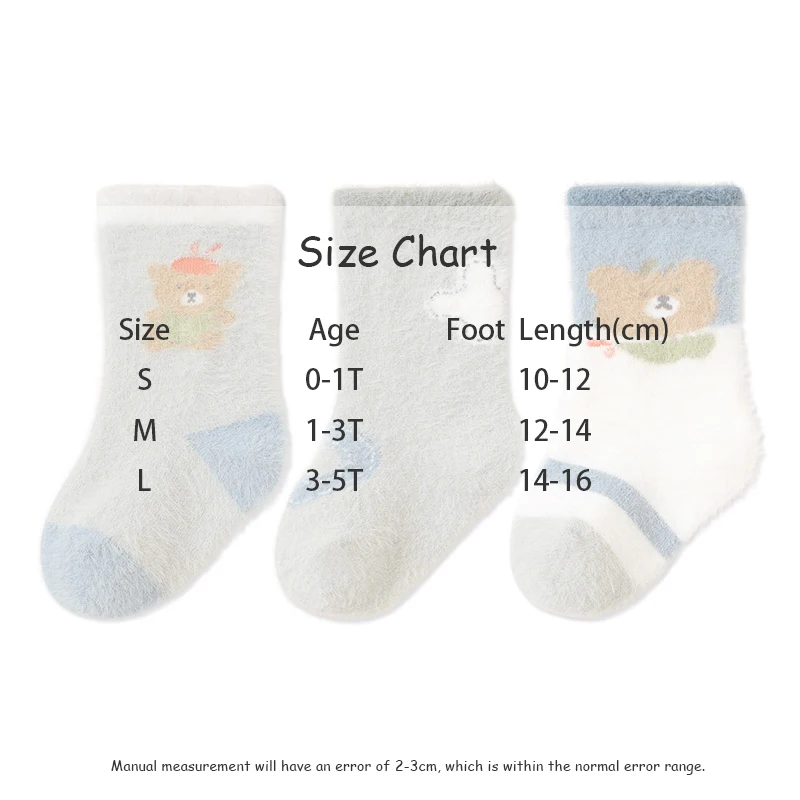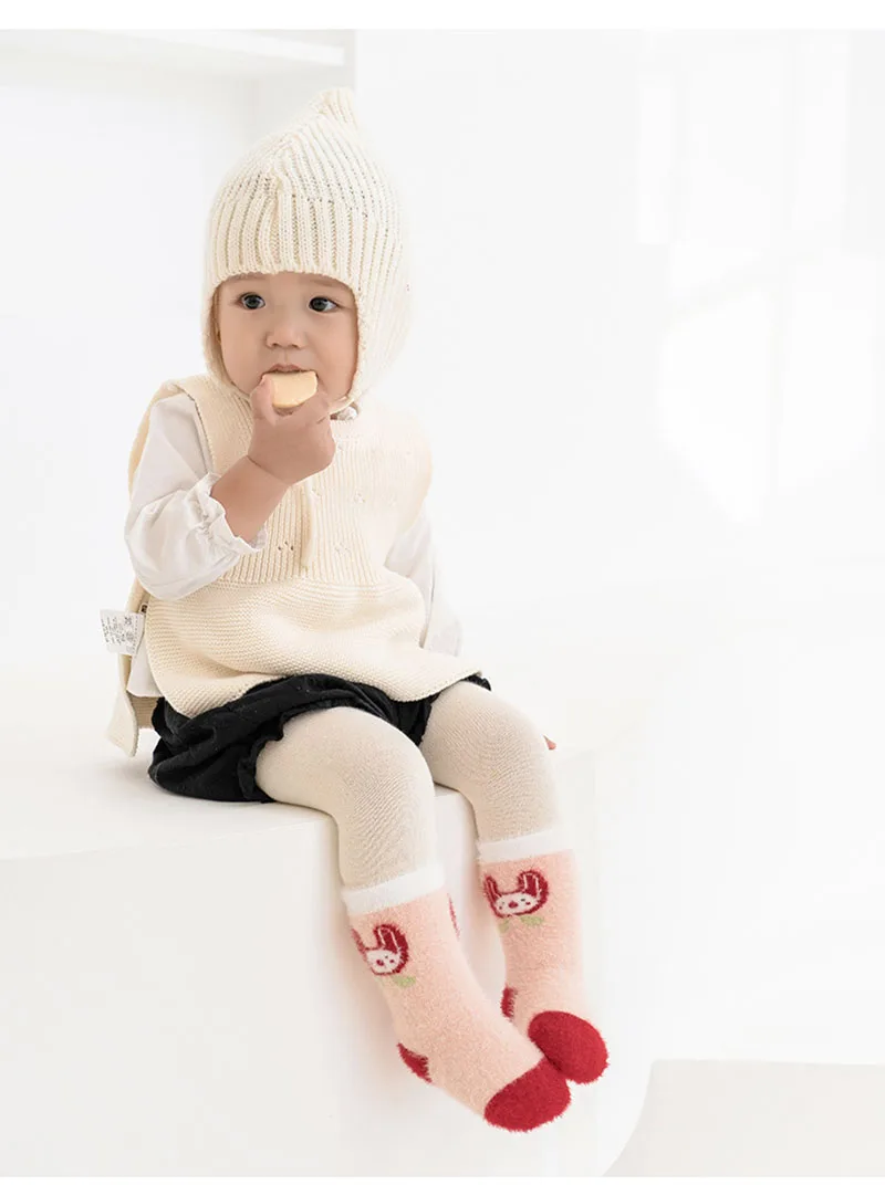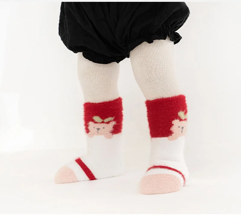 Calcetines de invierno para bebé en tubo, 0-5T, dulce oso de dibujos animados, calcetines gruesos hasta la rodilla para niñas, calcetines coreanos para niños pequeños