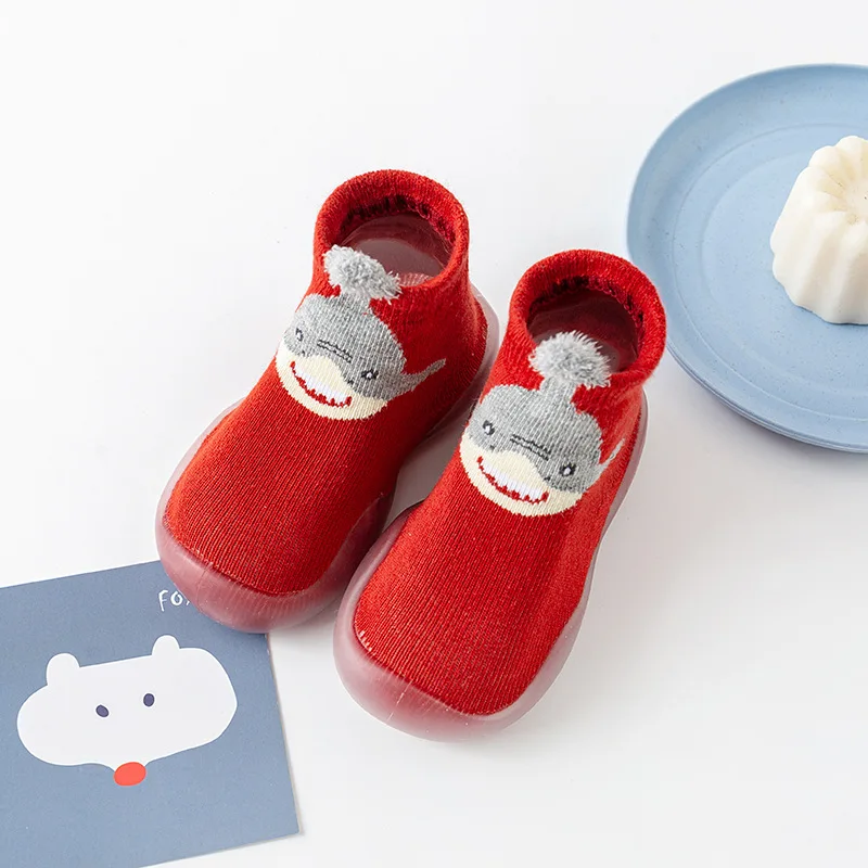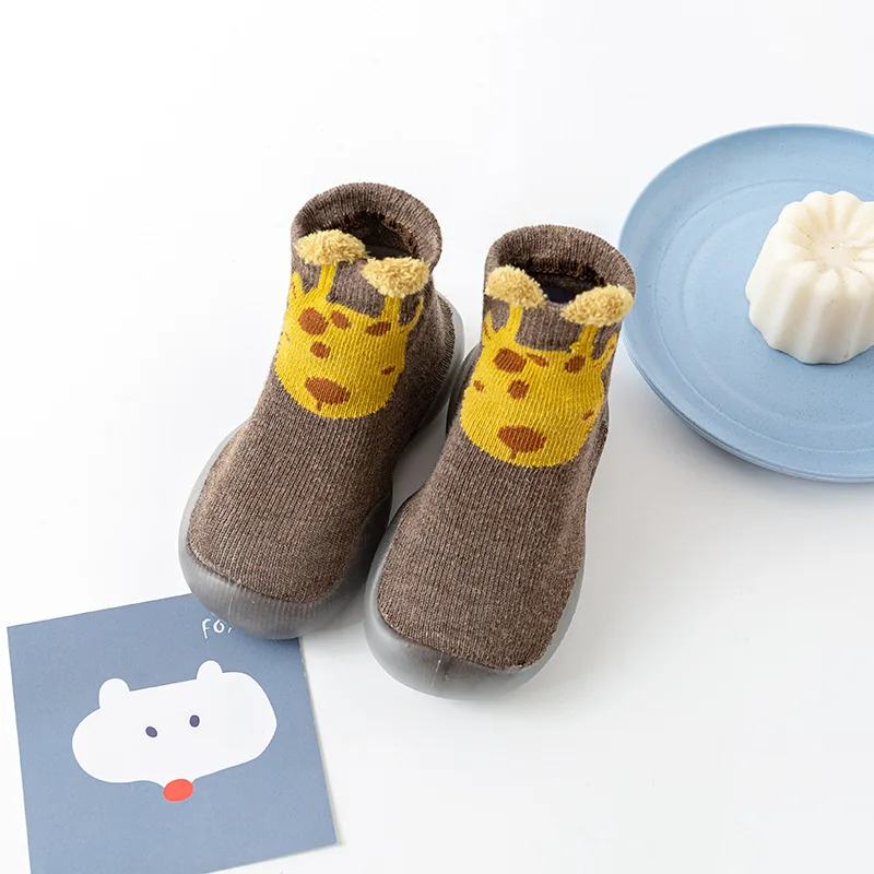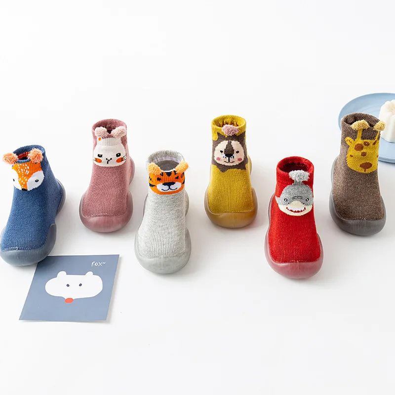 Calcetines de invierno con dibujos de animales para niños y niñas recién nacidos, zapatos bonitos para niños pequeños, calcetines de piso con suela de goma suave antideslizante, cosas infantiles
