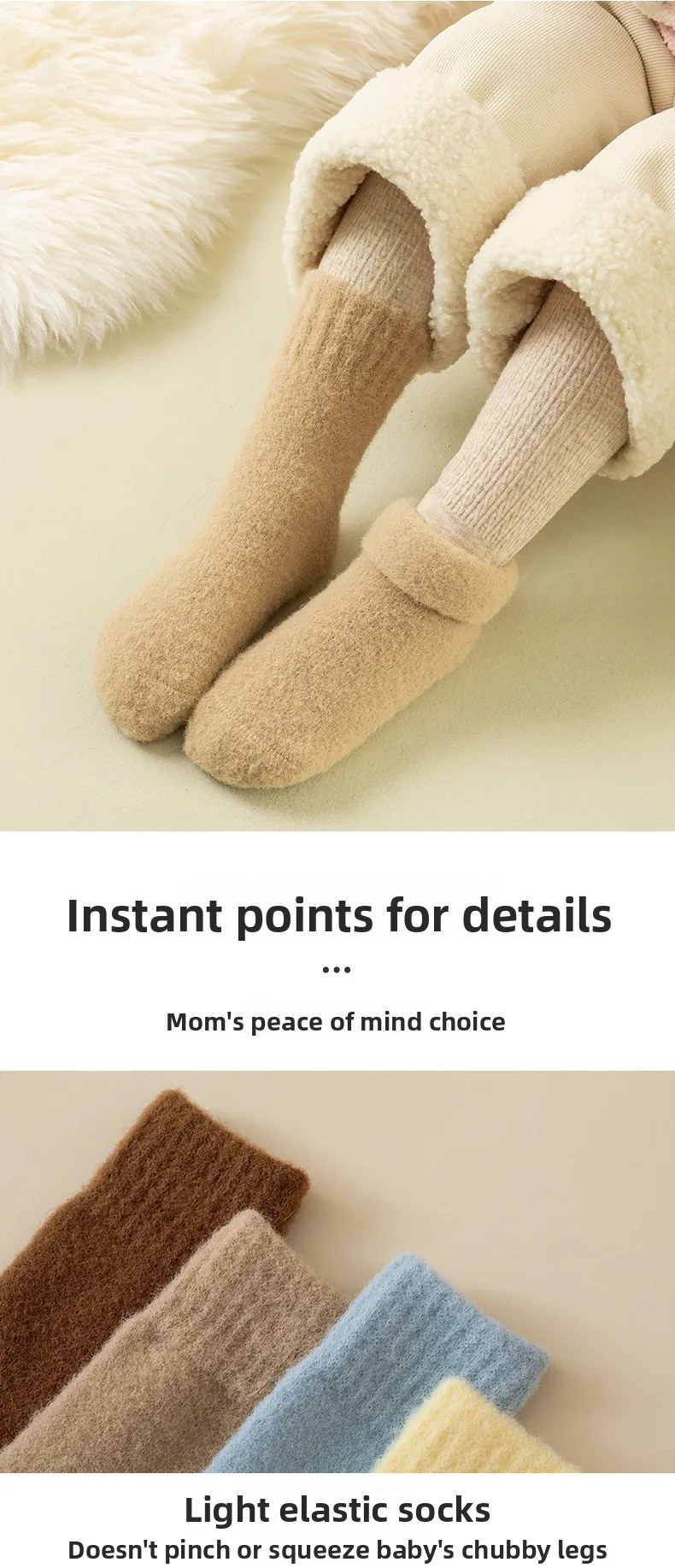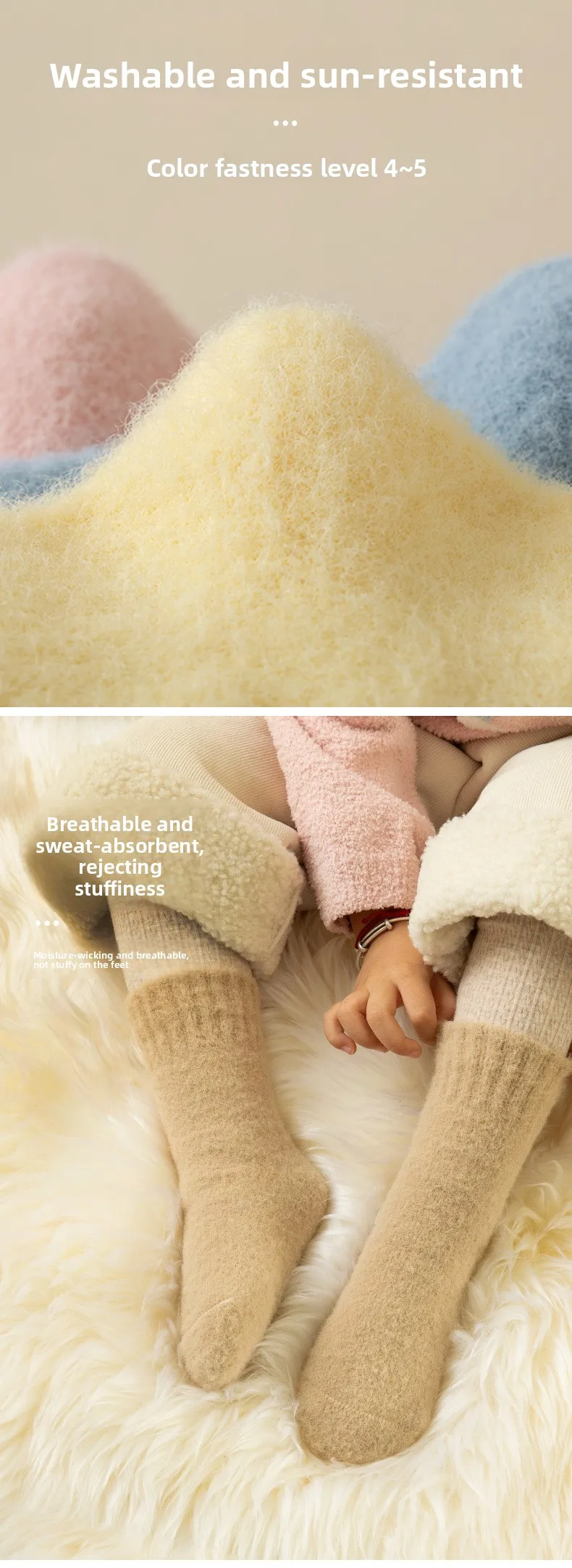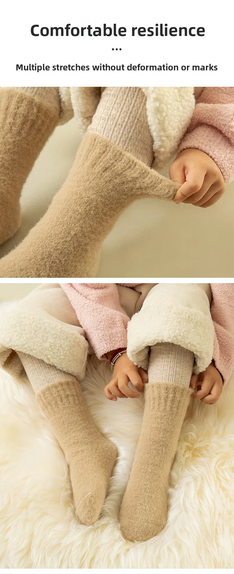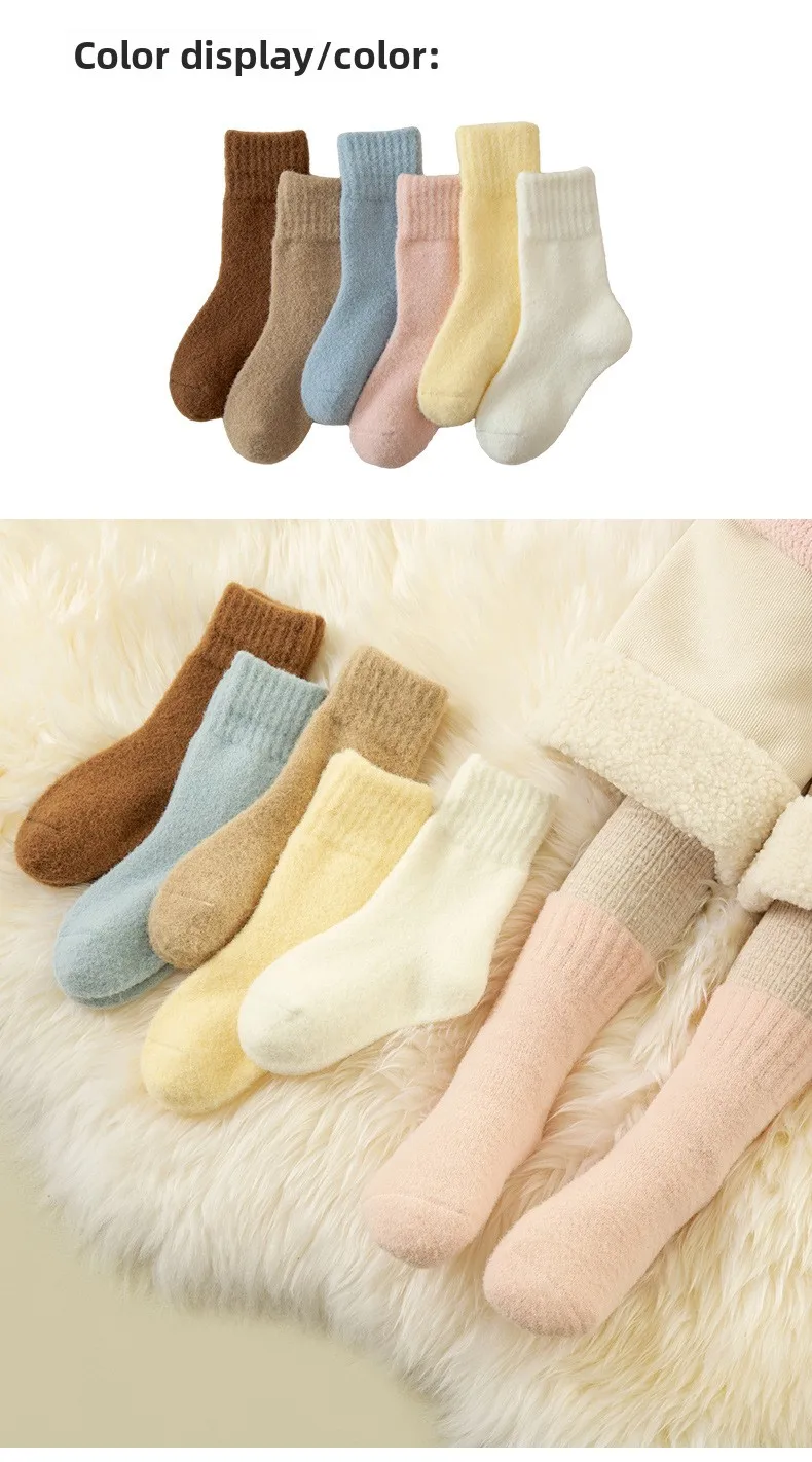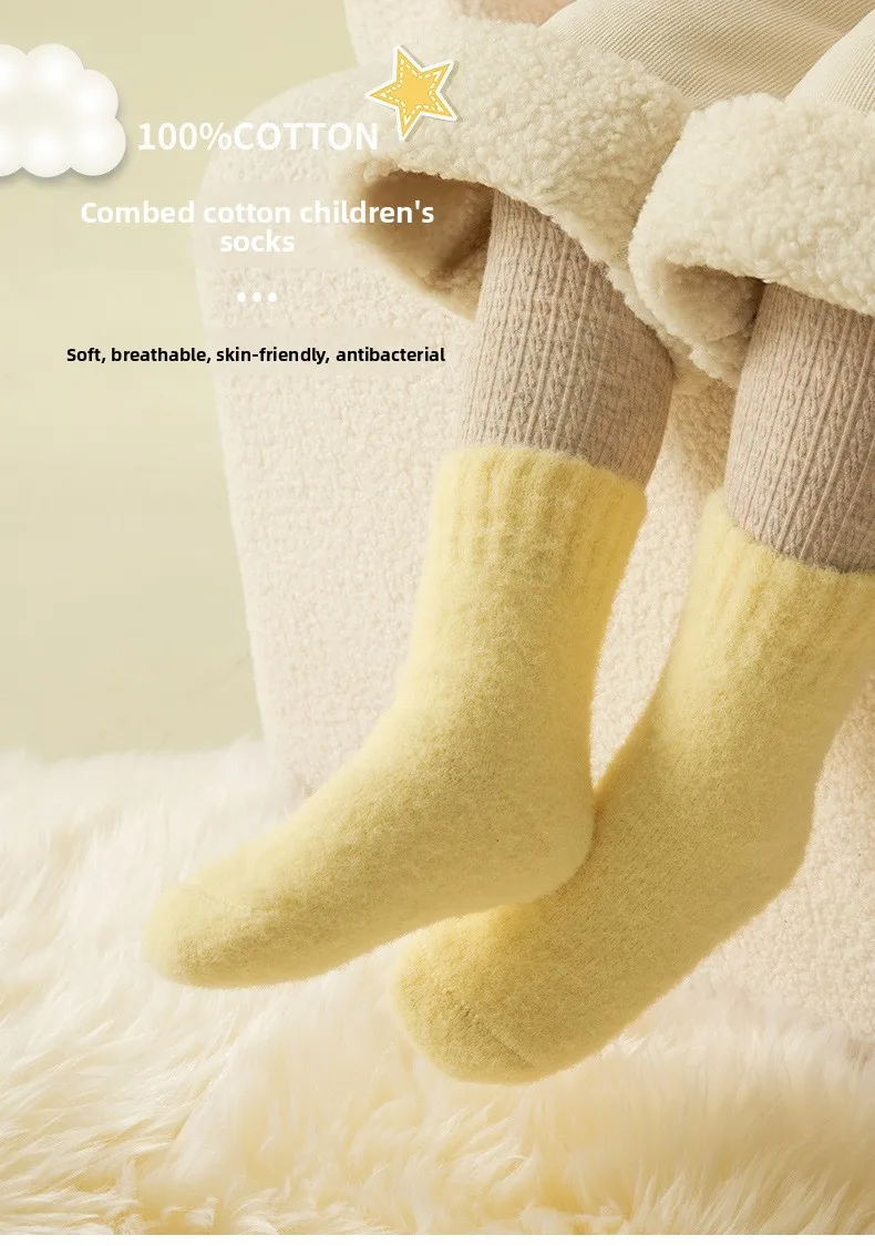 Calcetines de lana de invierno para niños: estilo ins de color caramelo, de moda, forro polar grueso de coral, hasta la mitad de la pantorrilla: ¡cálidos y antipilling!