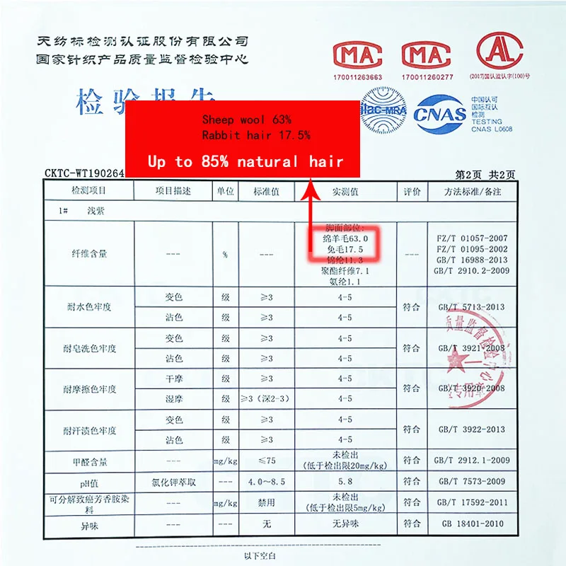 Contenido del pelo de conejo: 17,5%