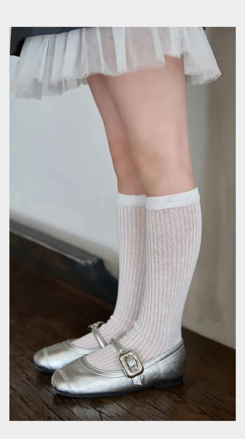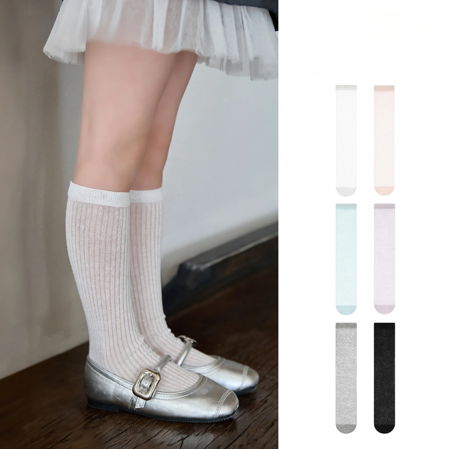 Calcetines largos finos de algodón sin hueso para bebé, medias a rayas JK Lolita, calcetines apilados hasta la rodilla suaves y transpirables a la moda, novedad