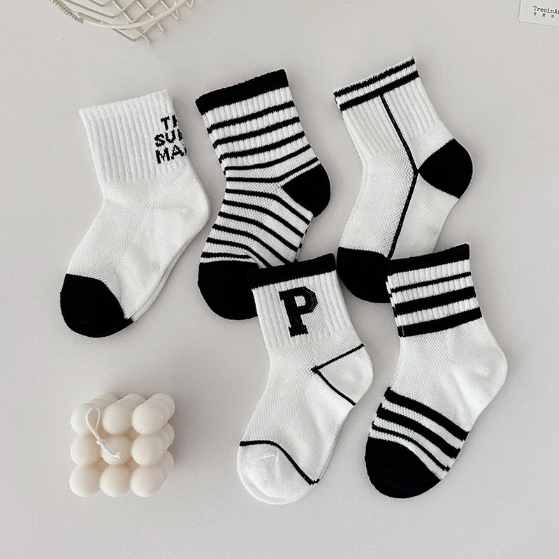 Comprar Calcetines largos finos de malla para niño, medias tobilleras informales con letras coreanas blancas, primavera y verano, novedad de 2023, 5 pares