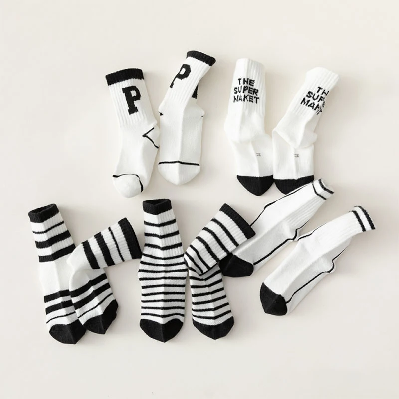 Comprar Calcetines largos finos de malla para niño, medias tobilleras informales con letras coreanas blancas, primavera y verano, novedad de 2023, 5 pares