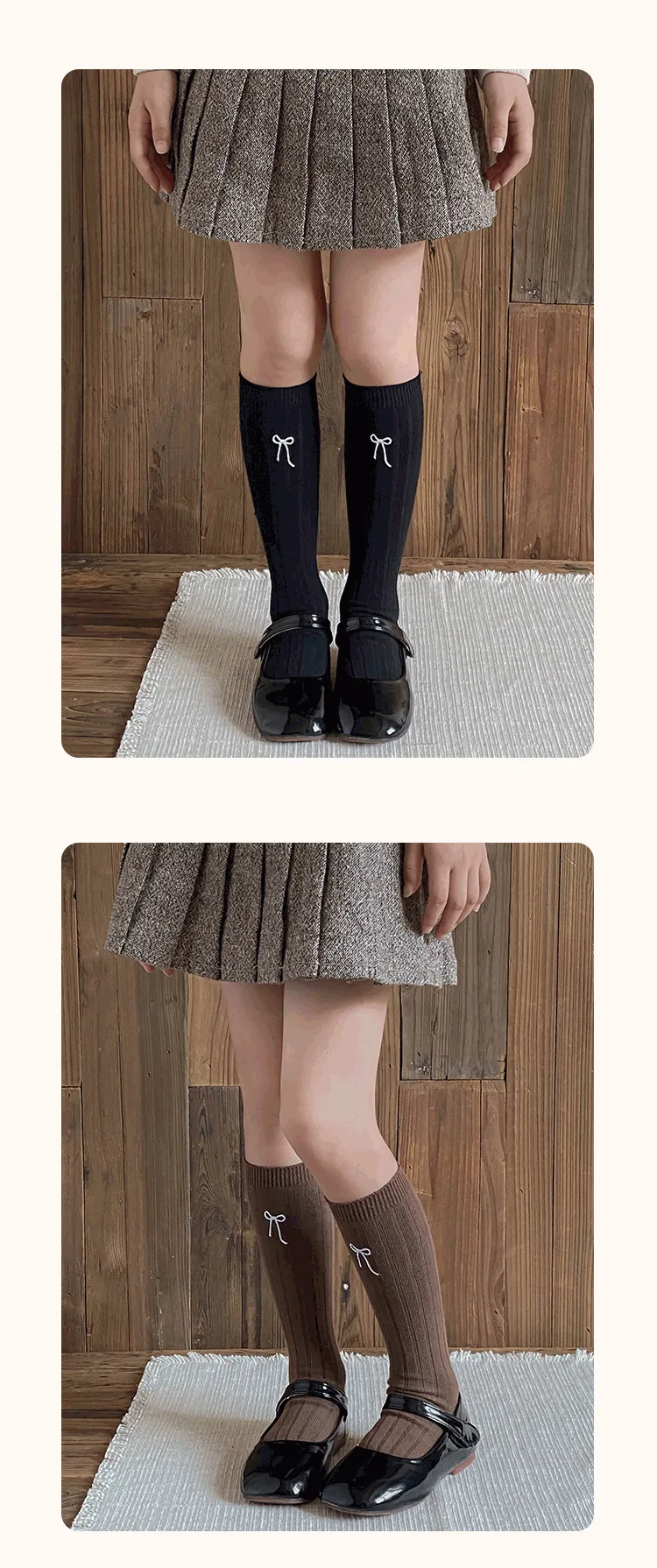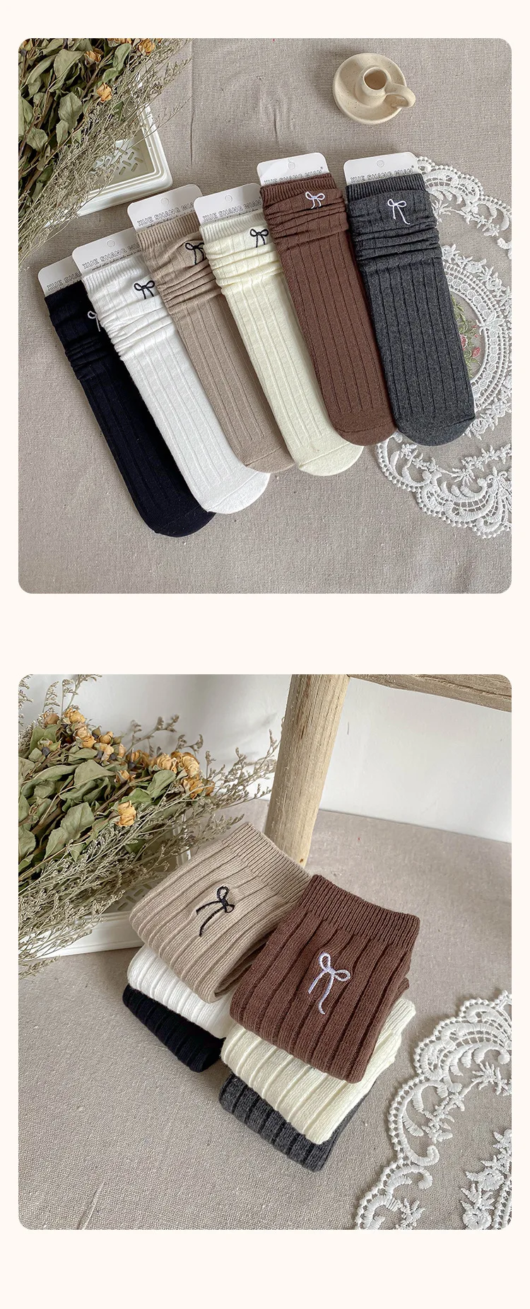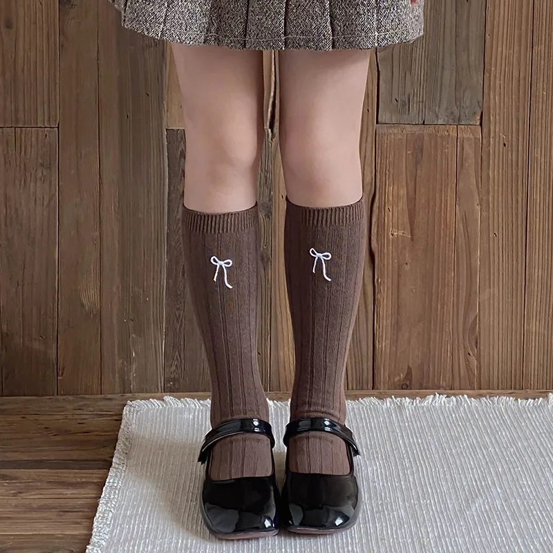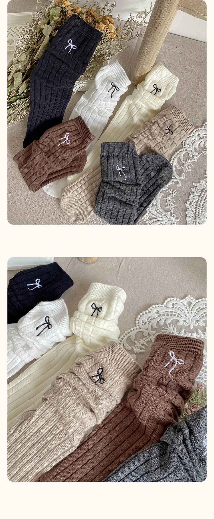 Calcetines largos para niñas, medias con lazo bordado para primavera y otoño, calcetines coreanos de algodón de tubo largo de punto liso para niñas de Lolita
